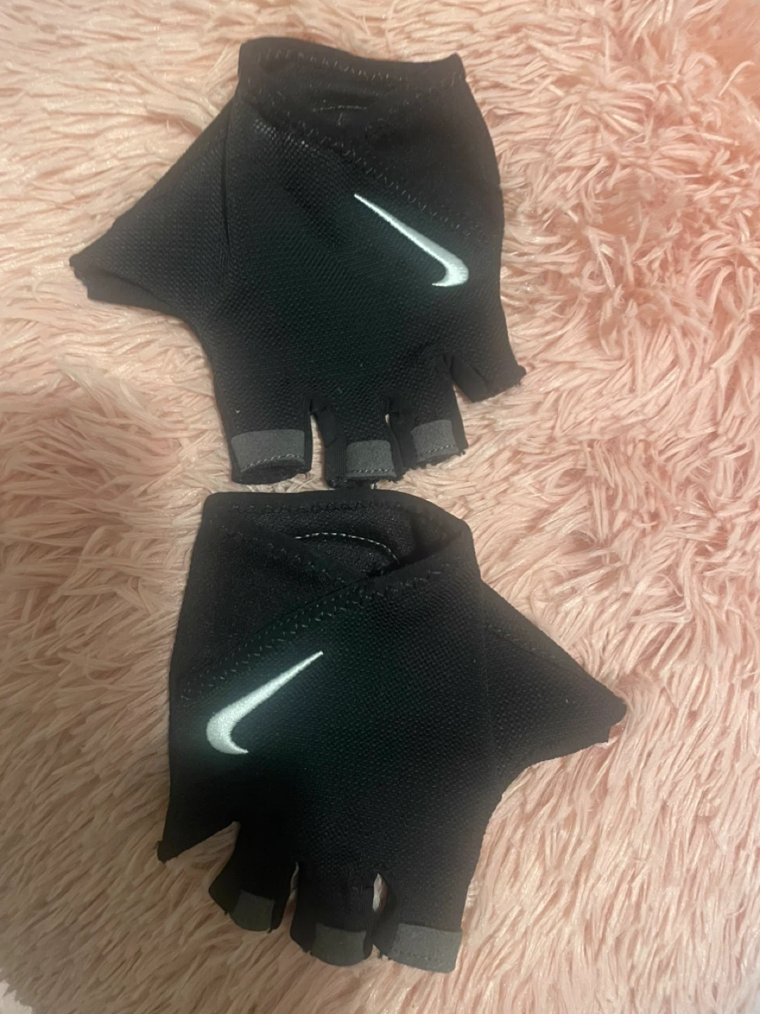 These black Nike fingerless gloves are designed for fashion and practical way to open or get anything from your purse.They feature a textured grip on the palm for better handling. The fingerless design allows for dexterity They're great add and look pretty.