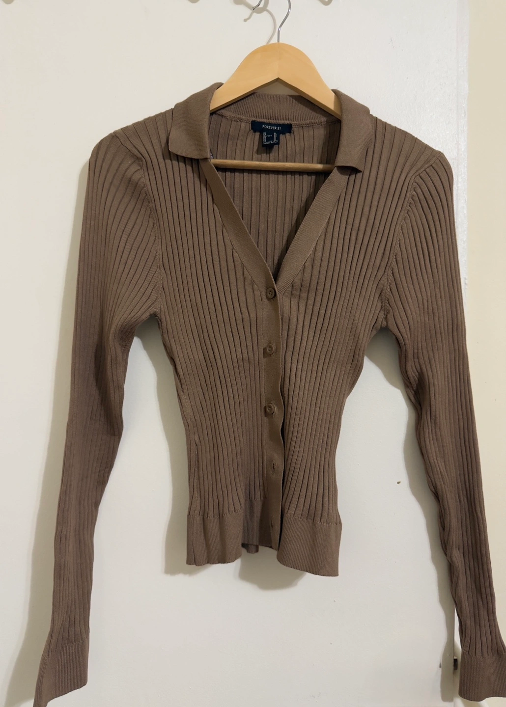 Buy & SellForever 21 Brown Ribbed Knit CardiganForever 21 Brown Ribbed Knit Cardigan$5Brown ribbed knit cardigan. Long sleeves, button closure. Collared neckline. Cropped fit.SizeLargeBrandForever 21WHERE TO MEETCheck LocationView MapSELLERSiobeLawrence9610 reviews0 chats·2 favorites·33 viewsSEND CHAT TO SELLERHi Siobe! I’m interested in your listing.Hi Siobe! I’m interested in your listing.Get the Karrot app to chatSign In to chat