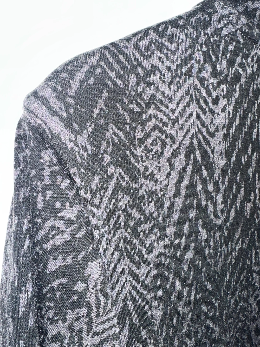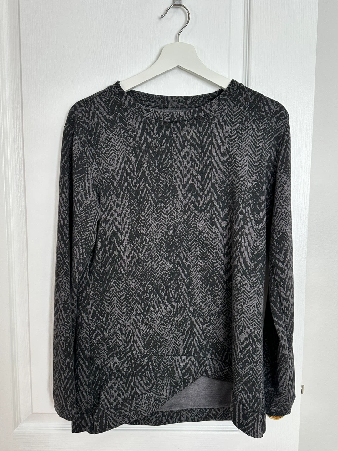 This gently used Tuff Athletics long sleeve shirt features a cool all-over animal pattern and a cool overlapping detail at the hem. It's a size M/M. Perfect for casual wear or light athletic activities!