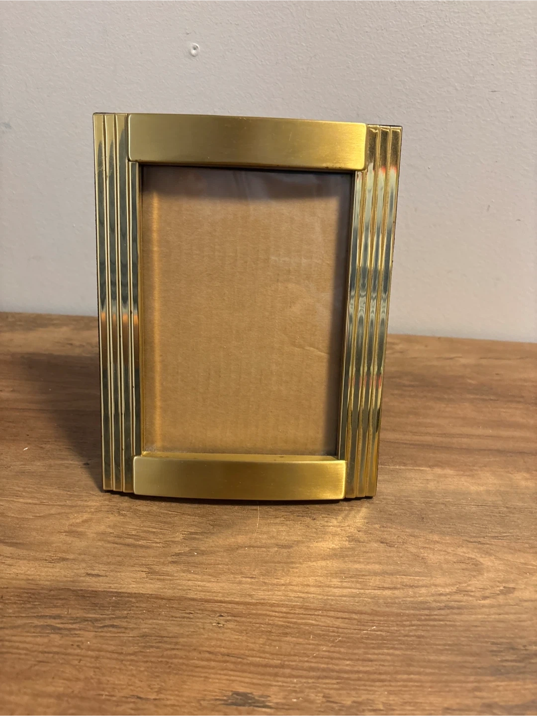 Selling a nice brass picture frame! It's in great shape and ready to display your favourite memories. The frame has a sleek design and a stand on the back. Perfect for any room!