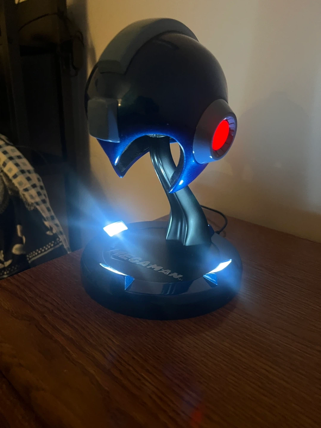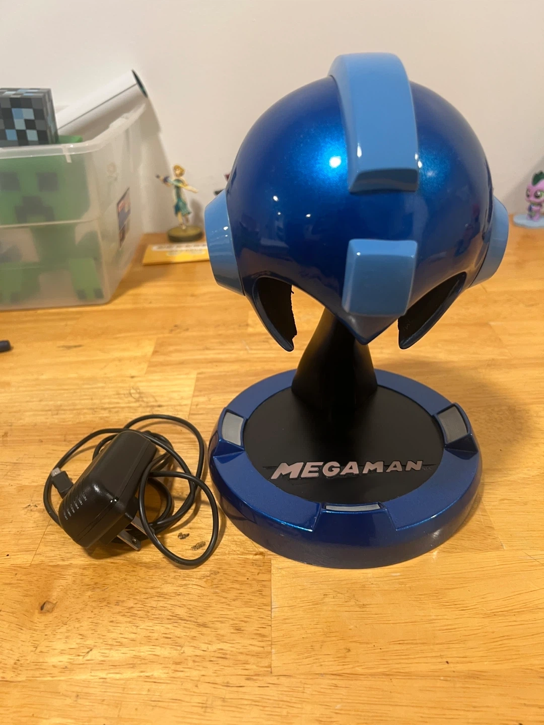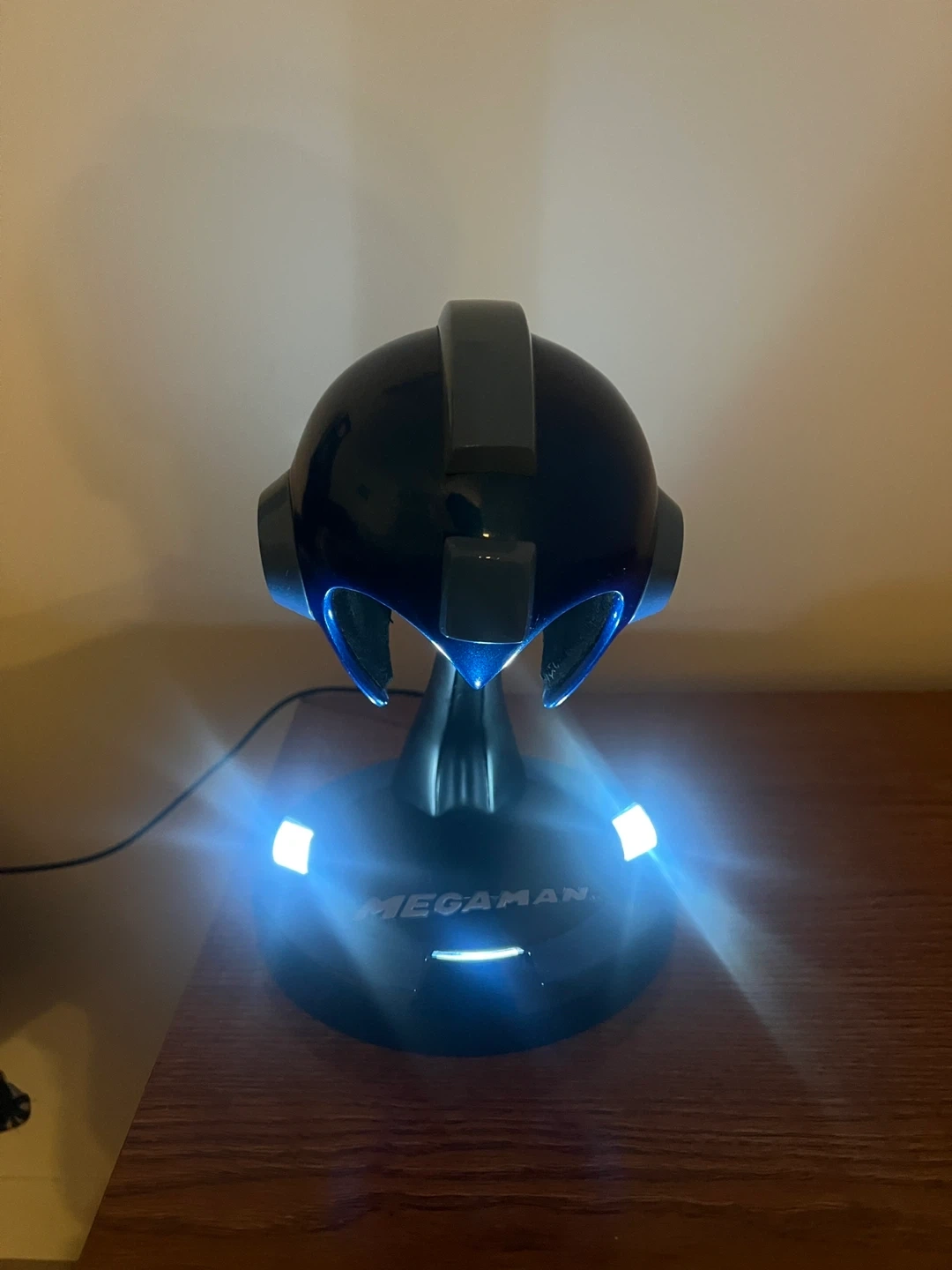 This is a Mega Man Collector's Edition Premium Quality Resin Collectible. It features a metallic blue helmet design with a red eye accent. The base has "Mega Man" printed on it and lights up with white LEDs. Designed and manufactured by Multiworld Studio, Inc. for Capcom. (10 inches, sadly no box so I discounted for that, I got it a long time ago. But I kept it in great condition)