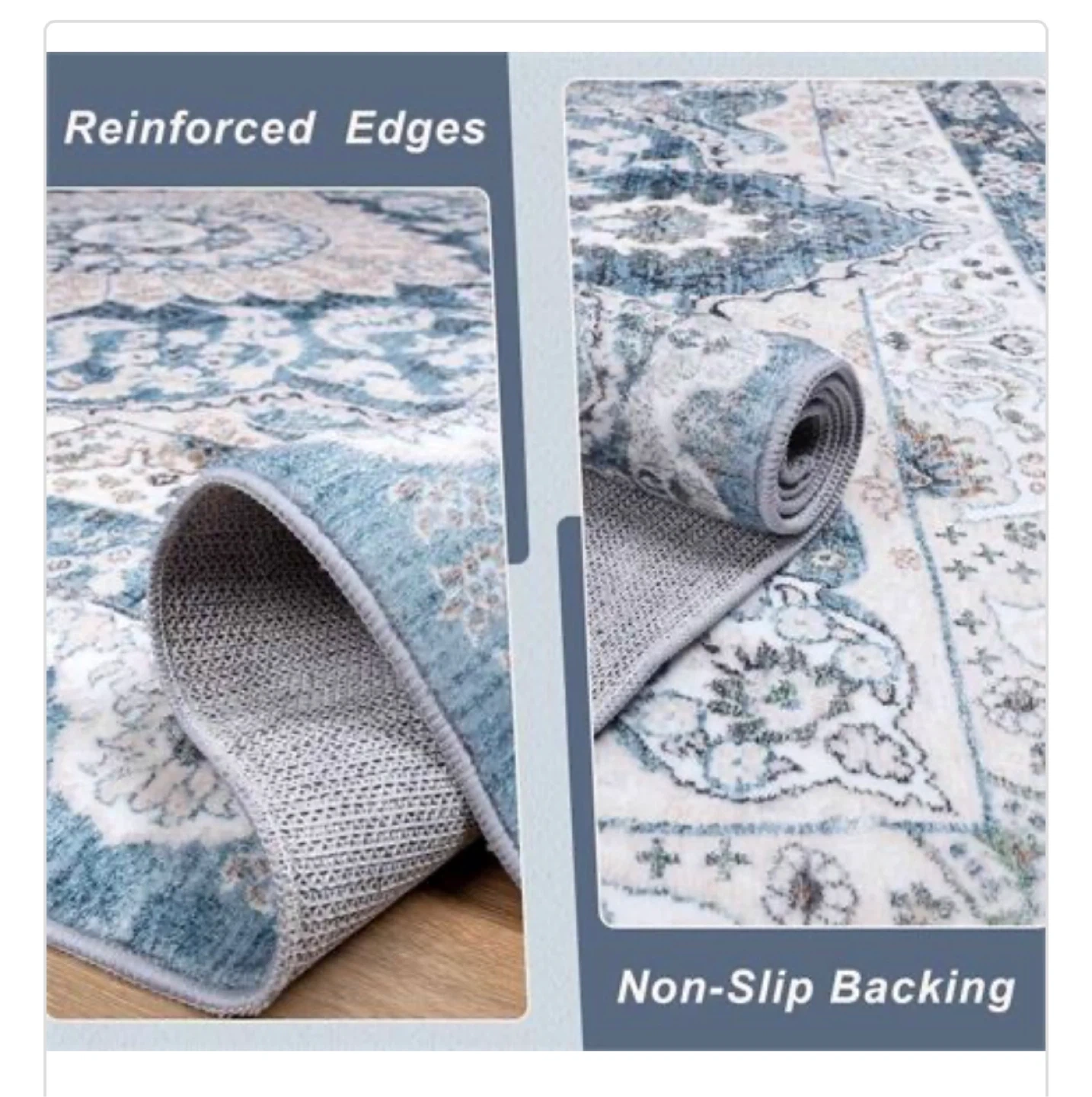 This area rug features a beautiful traditional medallion design with reinforced edges and a non-slip backing. It's made with a soft material that's comfortable underfoot. This rug's classic pattern makes it a nice addition to any bedroom or living space!