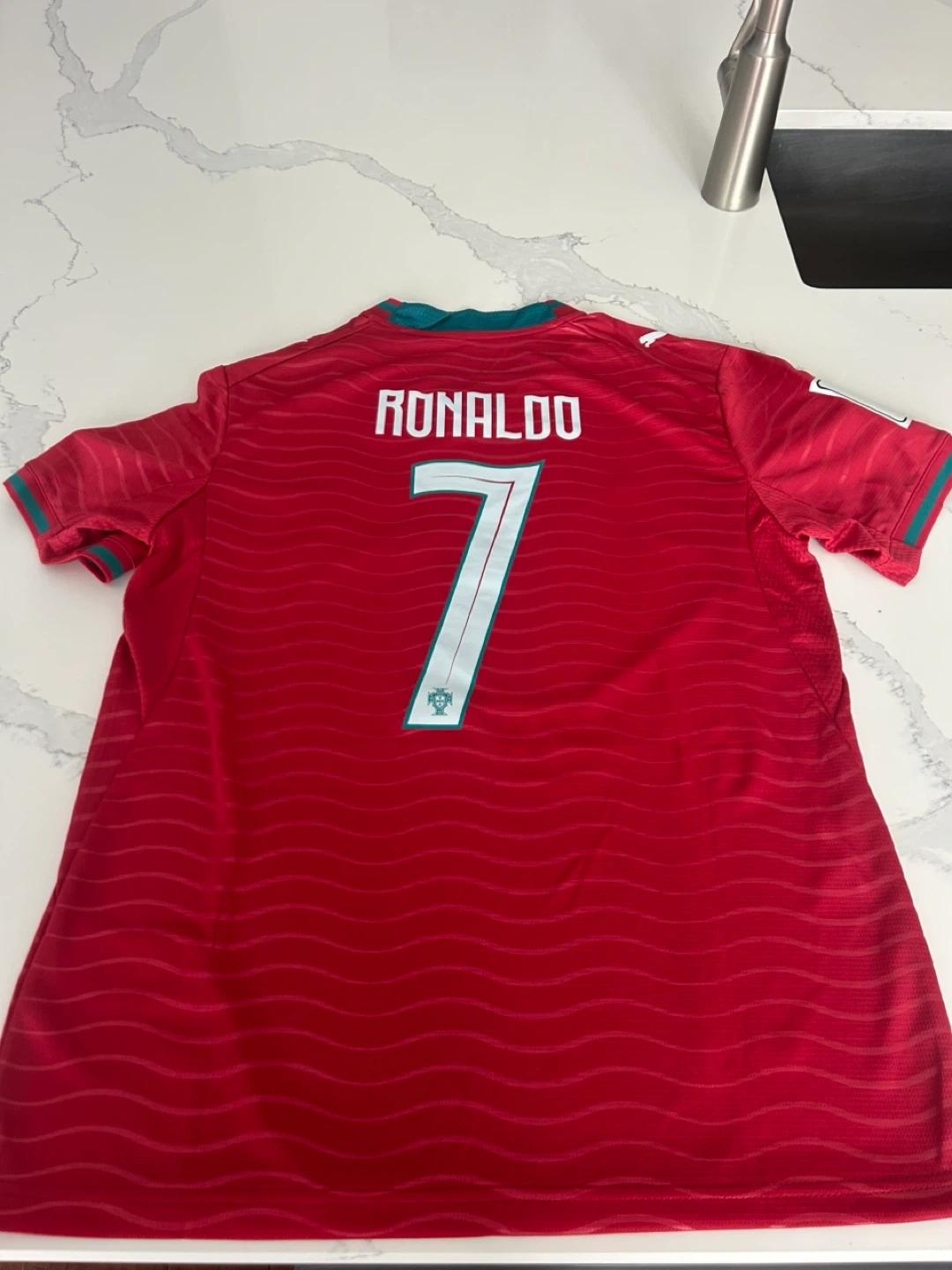 Pick up at 401 and Weston road . Top quality replica .This is a red home Puma soccer jersey featuring Cristiano Ronaldo's name and number 7. It includes the Portugal crest and various official patches, including FIFA Qualifiers and UEFA Foundation. The jersey is made with DryCELL technology for moisture-wicking. Perfect for any soccer fan!