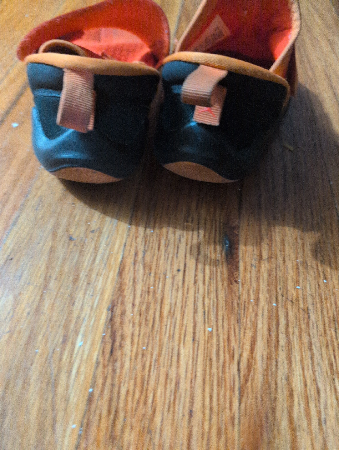 These toddler shoes are perfect for your little one! They feature a vibrant red and orange color scheme with a comfortable design. The shoes have a recognizable Jordan logo on the side. They are in good condition and ready for a new home