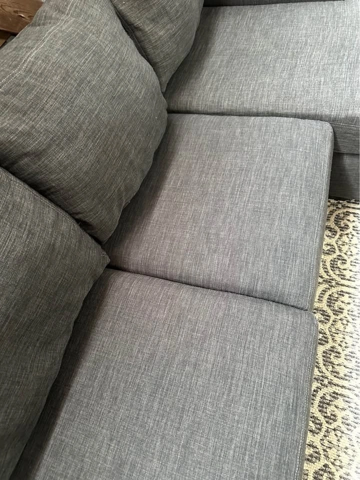 Professionally shampooed and steam cleaned. Comes apart in 2 pieces for easy storage and tight rooms. Removable covers for easy cleaning. From a pet-friendly home. Modern salt and pepper grey high-grade fabric. Comfortable springs in great shape. Ready for a new home. π‘ Dimensions available in photos.