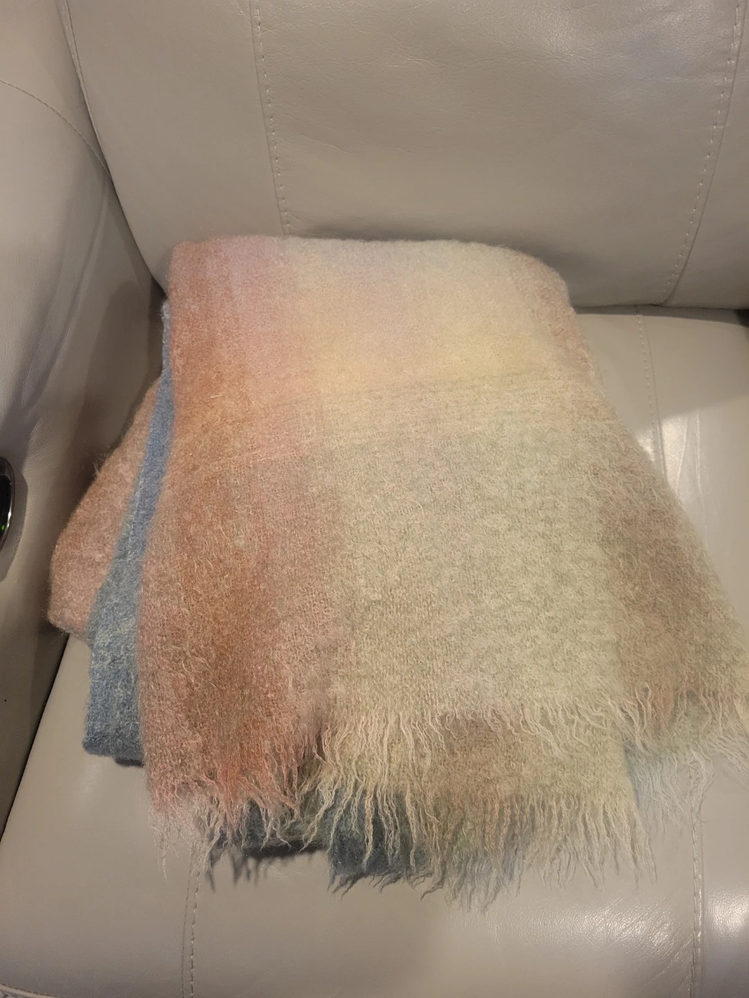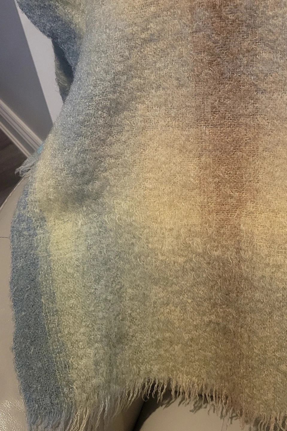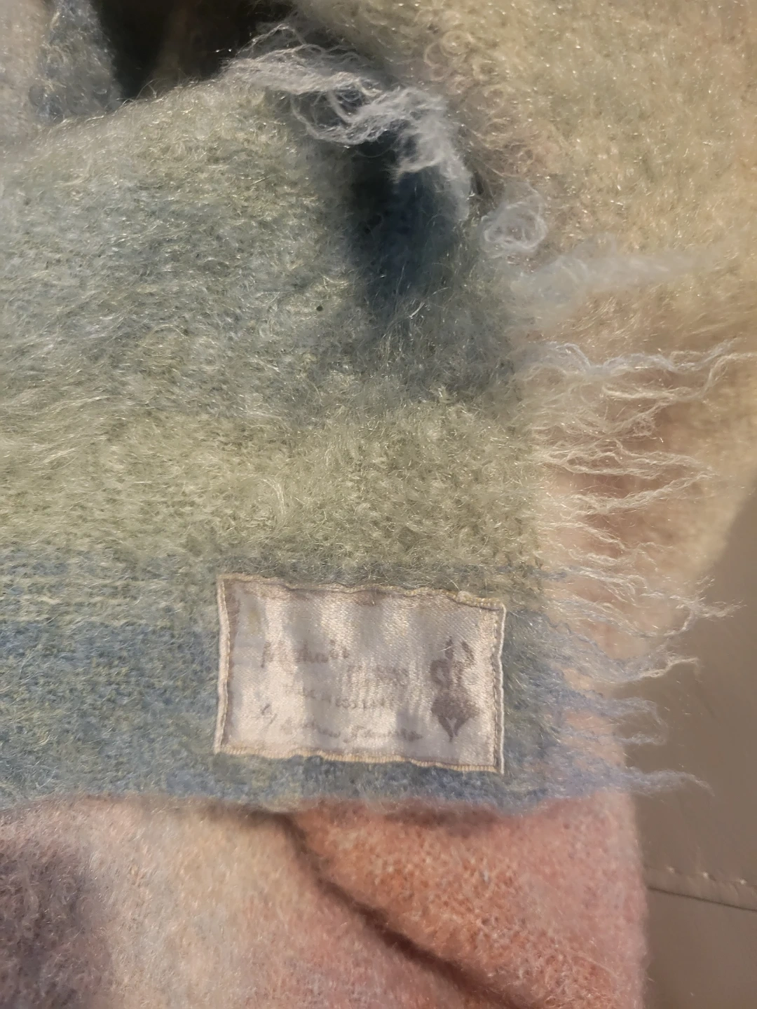 Vintage Pastel Mohair and Wool Throw Blanket. Picnic Blanket.