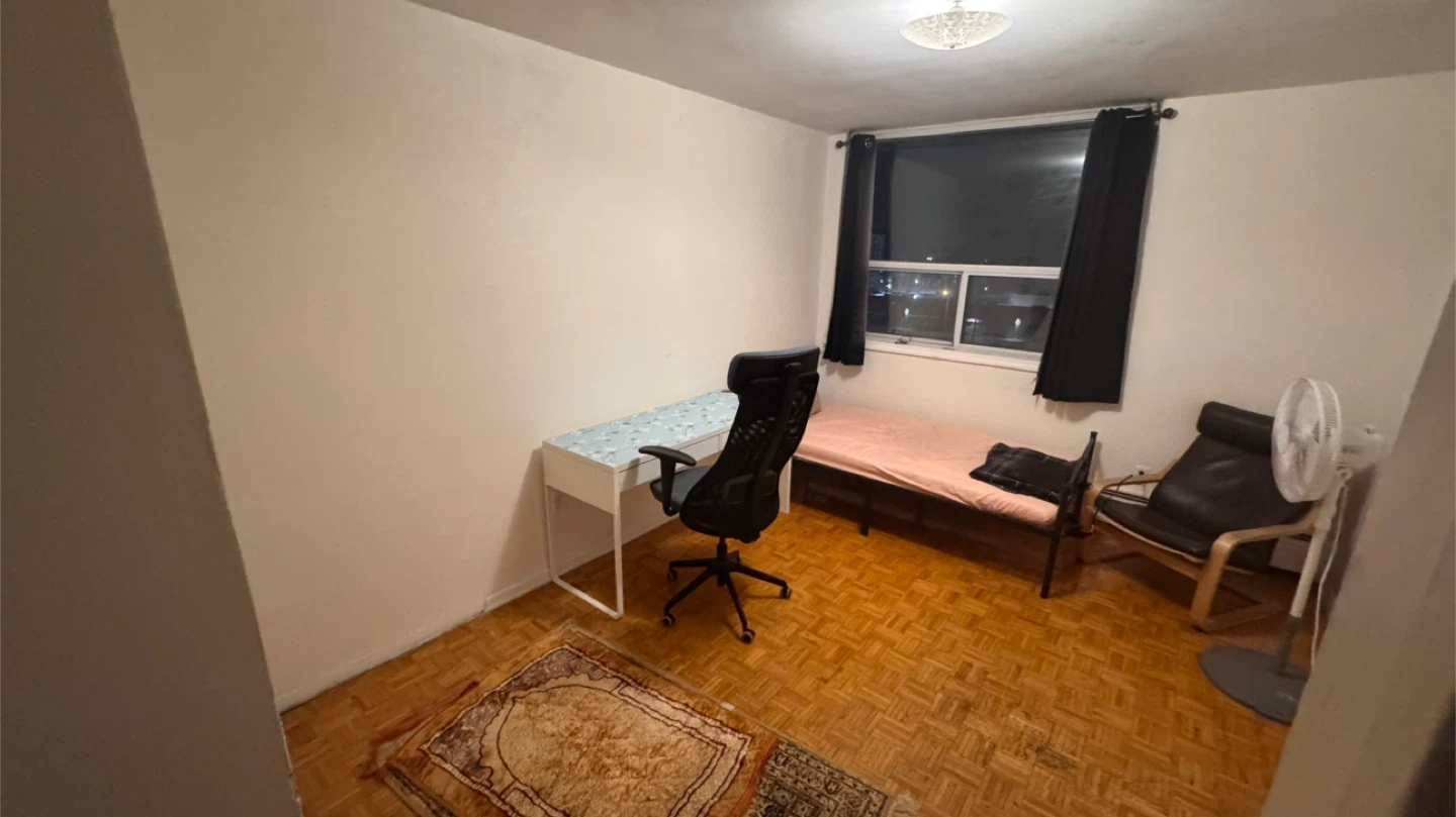 One room available in a clean 3-bedroom apartment near Markham & Eglinton.