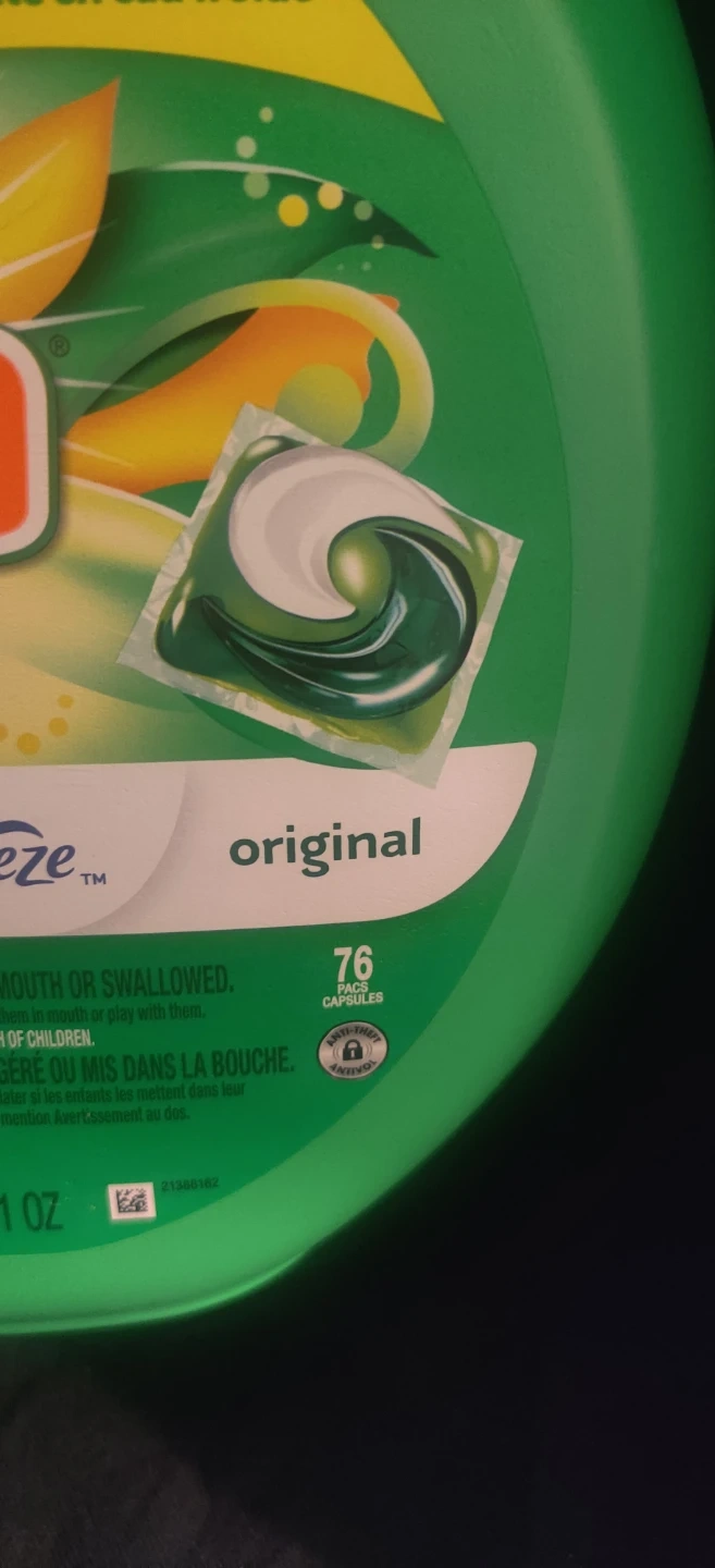 Gain Flings Original laundry detergent pods with Febreze freshness. They're 3 in 1 with Oxi cleaning power. This package contains 76 count capsules. For use in all machines and temperatures.You will have to pick up within 7 days.