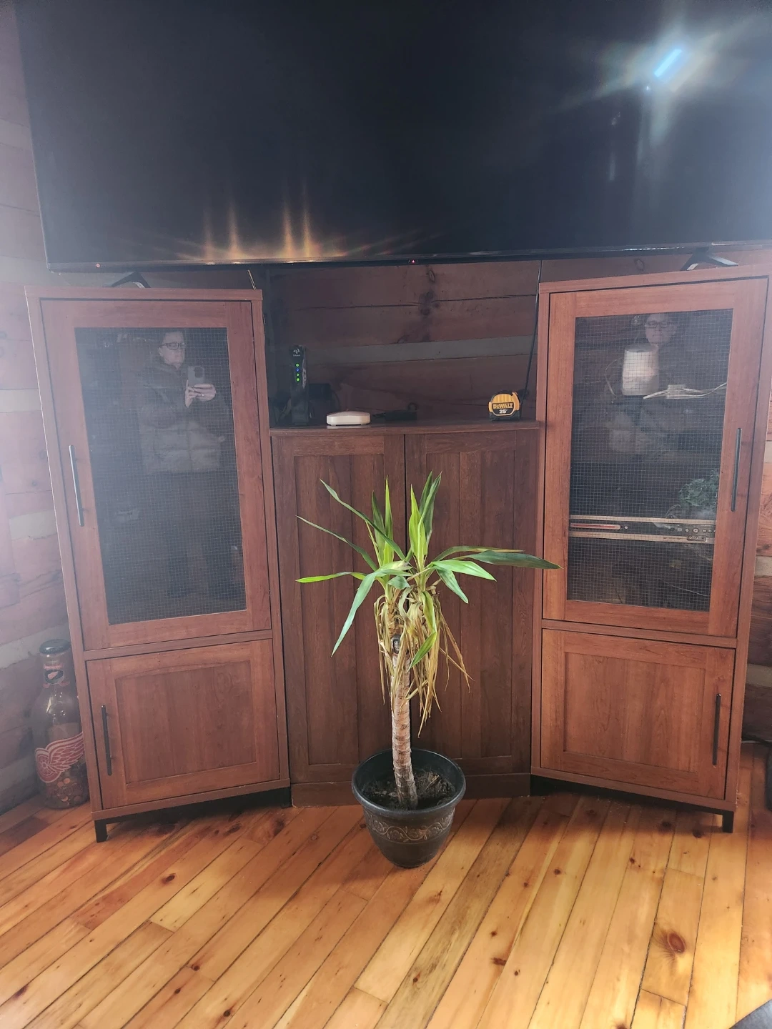 Wooden Cabinet with Glass and Wire Mesh Doors