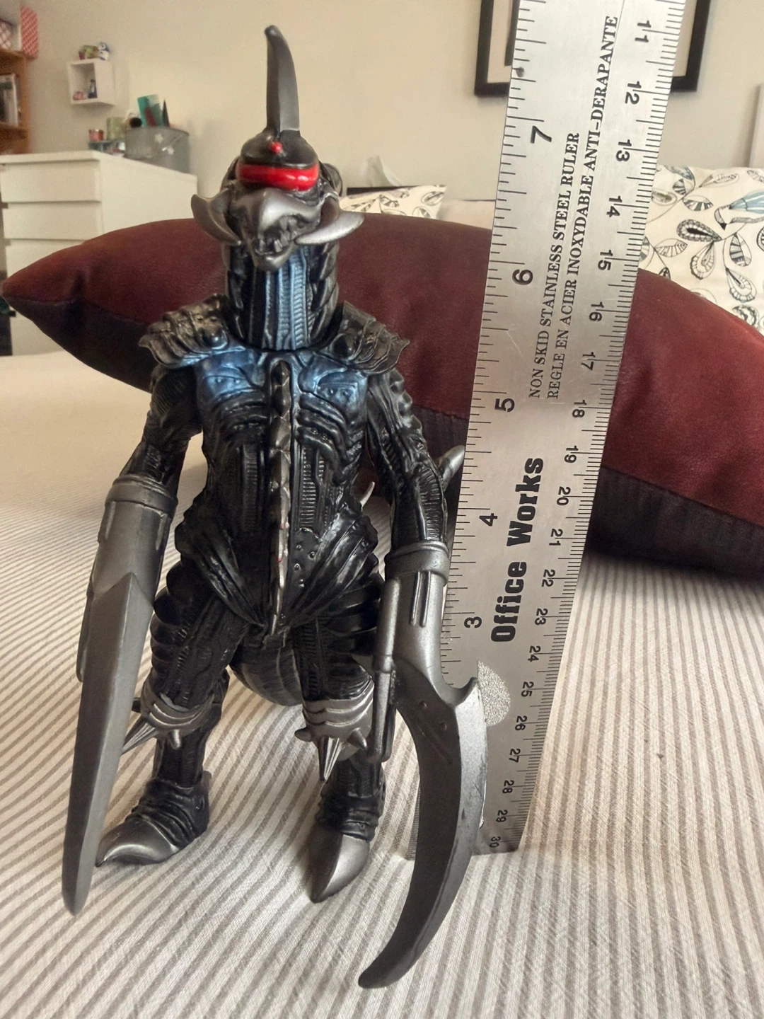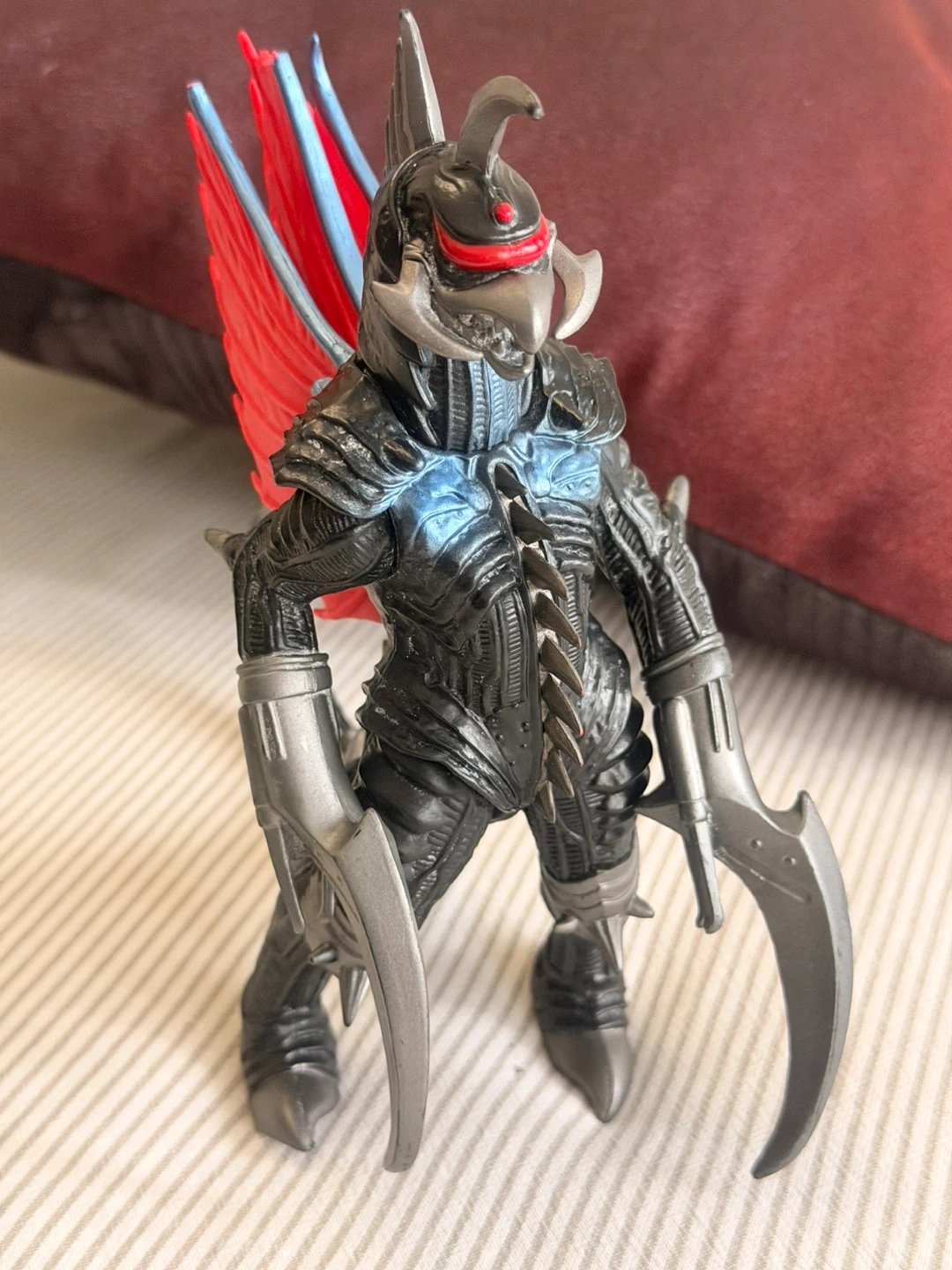 This is a highly detailed MonsterArts Gigan action figure. It measures approximately 7 inches tall. It's made of durable plastic and features articulated limbs for posing!