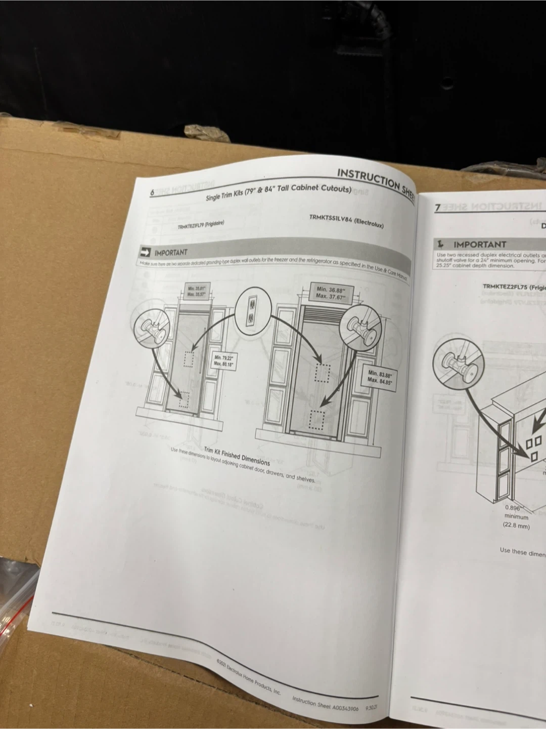 Includes instructions and hardware for dual track kits. Designed for 79" full cabinets. Box is included and shows wear. All components appear to be present.