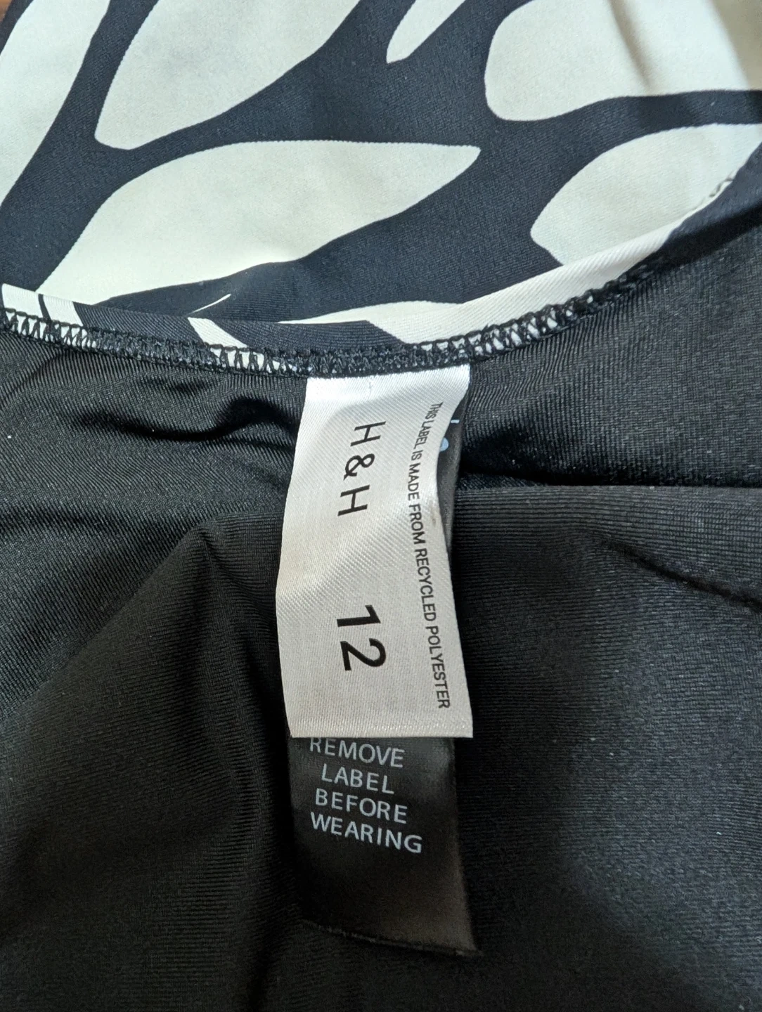 This H&H swimsuit features a bold black and white leaf print. This would be great for a beach day or swimming pool! New, no tags.