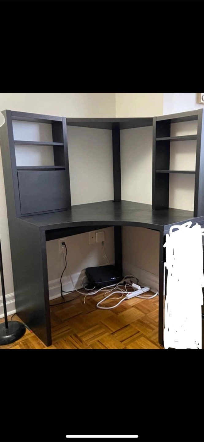 Looking for a stylish and functional workspace? This gently used IKEA corner desk is the perfect fit for any home office or study area! Its space-saving design maximizes corner spaces while offering plenty of storage with built-in shelving and three spacious drawers. The desk’s sleek black finish complements any room décor, providing a modern and professional look.