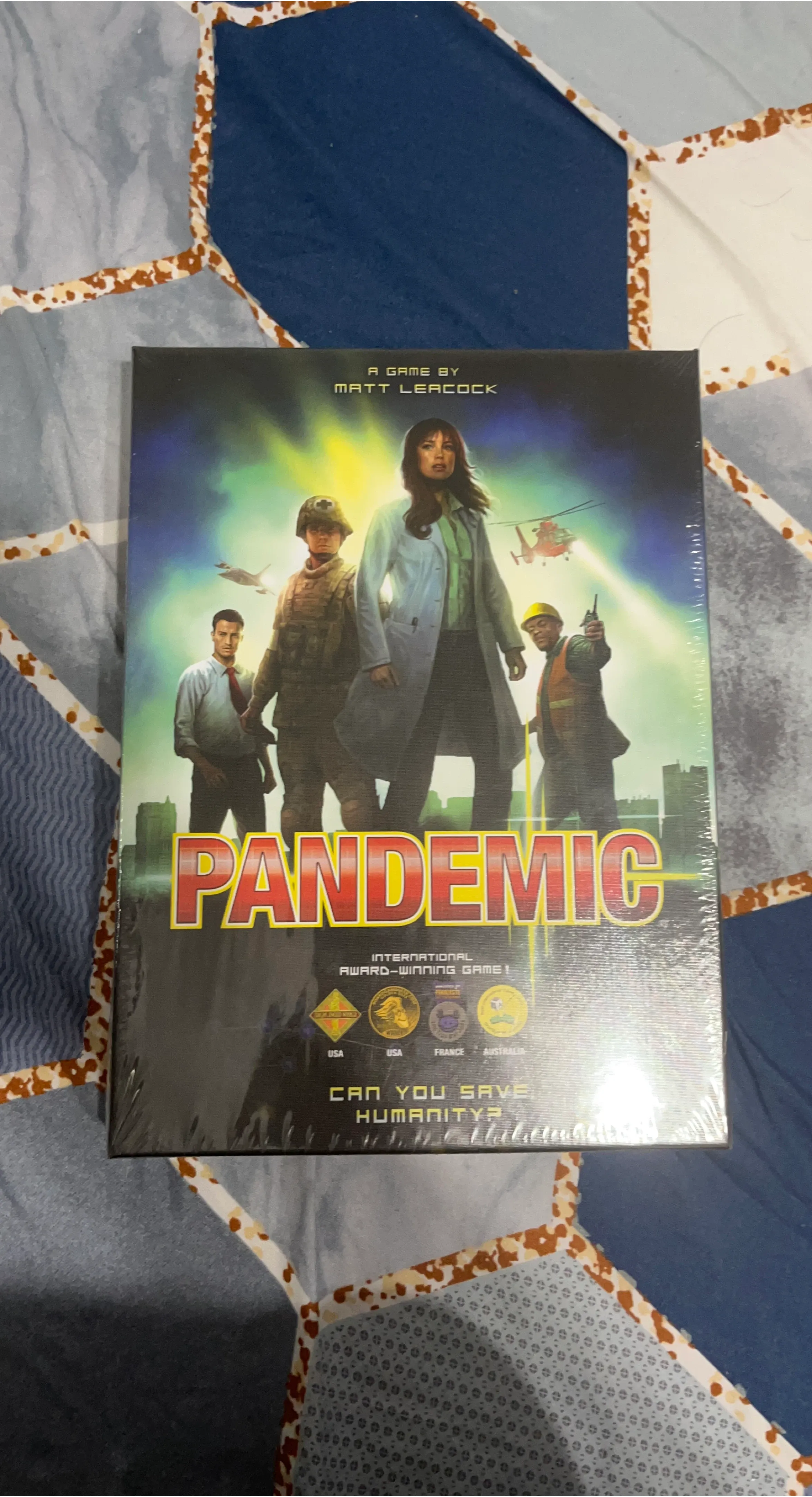 Pandemic board game, an international award-winning game designed by Matt Leacock. This game is about saving humanity from diseases. It's a cooperative strategy game for players.