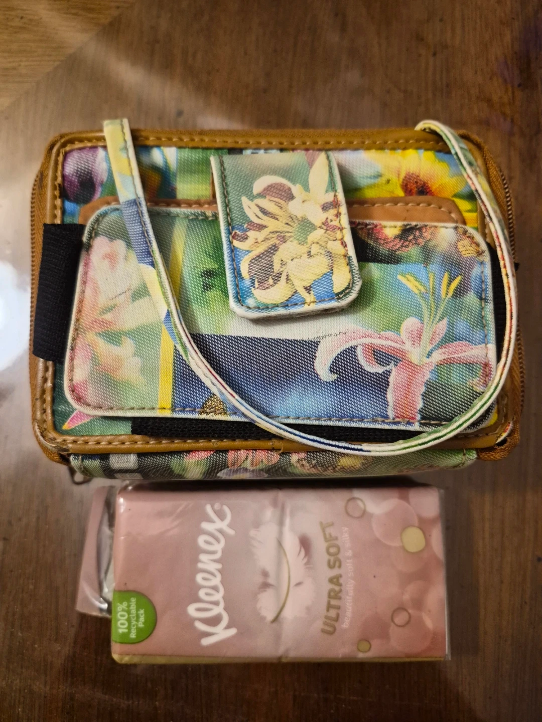 I bought this bag in Greece. This mini bag is very convenient for traveling because it's always with you, and your keys, phone, and money cards are always with you. You can even wear it under a jacket.There are small handles. There are removable long ones.There are a lot of pockets here, including secret and external pockets. I always used one for a pack of napkins, which is very convenient. If you can quickly get them out and wipe your hands.