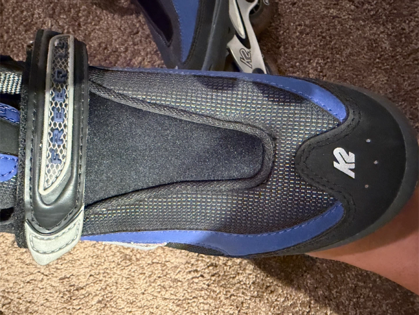 These K2 inline skates are designed for power transfer. They feature aluminum frames and 80mm max wheels. The skates are blue and grey.