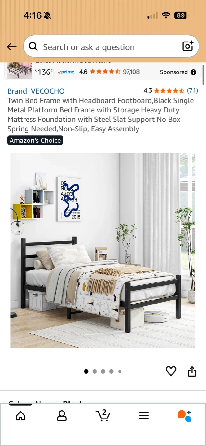 Zinus Black metal twin bed frame ,easy to assemble. Perfect for a small bedroom or guest room! Can throw in the mattress with this for 15 more. Will be disassembled. Would be preferred if pickup ca be after April 20th.