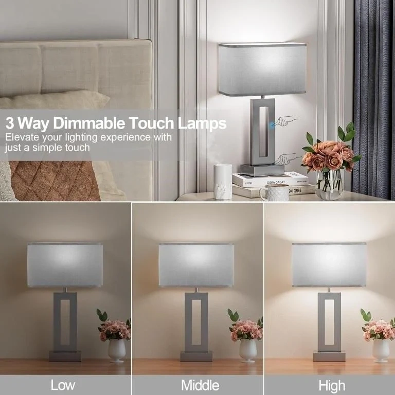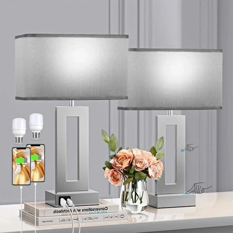 Bedroom Table Lamps Set of 2 - Grey Touch Bedside Lamps with USB C+A, 3 Way Dimmable, Modern Night Stands Lamps for Living Room End Tables - Brand New Sealed in Box!