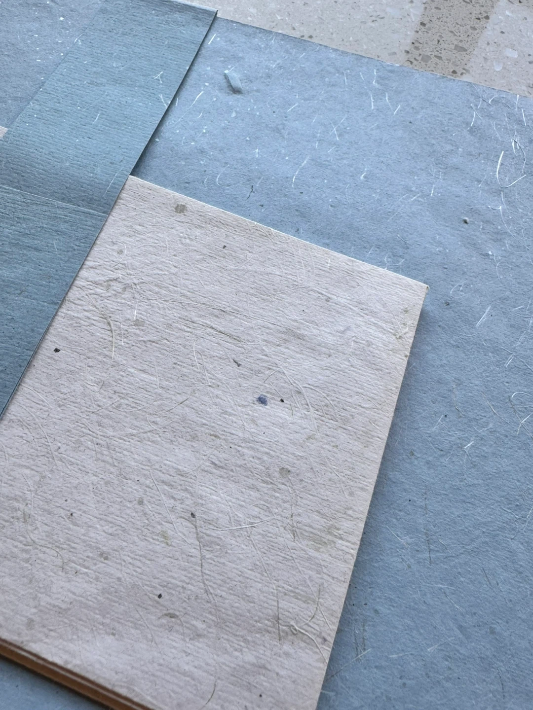 Pretty handmade stationery set featuring textured paper with natural fibres. It includes 2 sheets of paper and 3 envelopes, perfect for sending thoughtful messages. The set has a unique floral design on the envelopes.