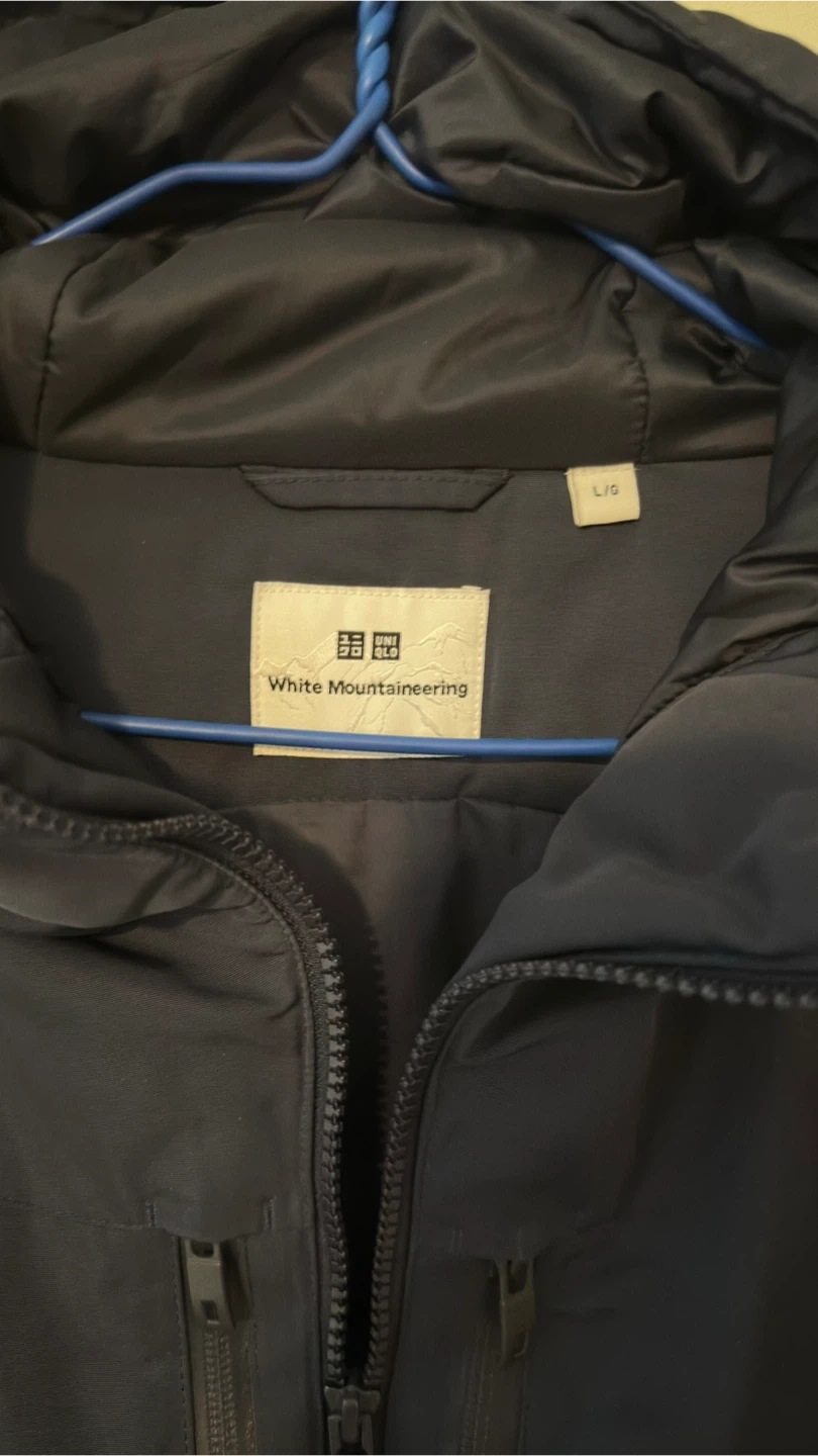 Dead stock!!!! This navy hooded jacket is from the White Mountaineering collaboration with Uniqlo. It's a size L/G and features multiple zippered pockets. It's great for staying warm and dry.