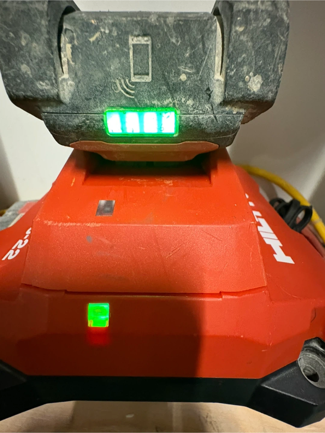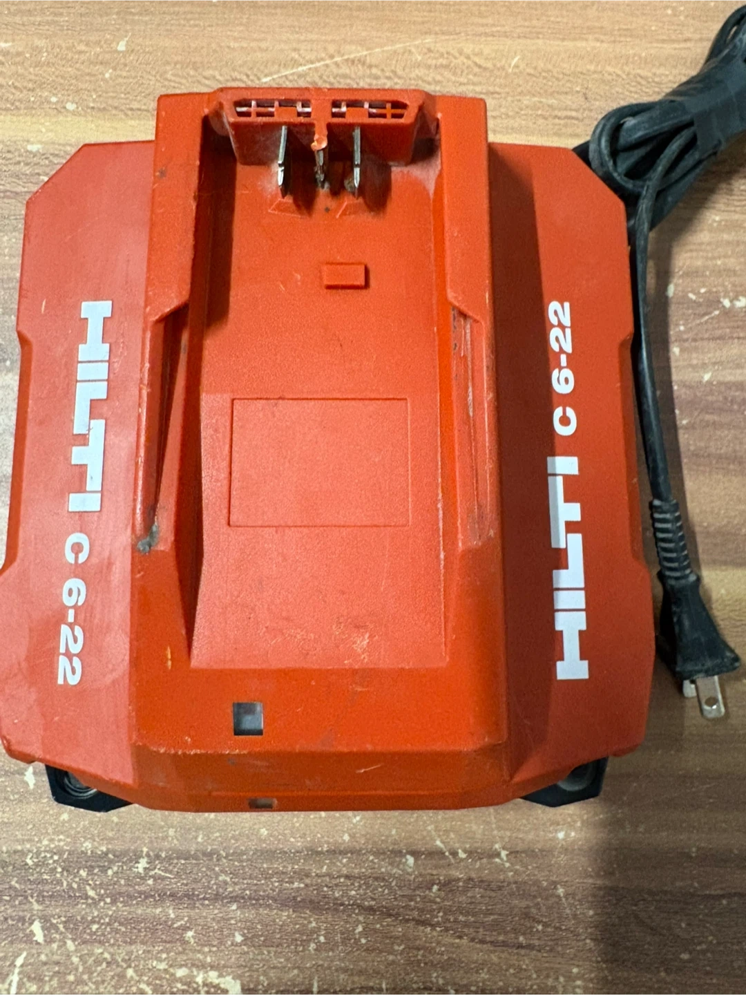 This is a Hilti C 6-22 battery charger. It's designed for Hilti 22V batteries. The charger has indicator lights showing battery status. Comes with power cord.