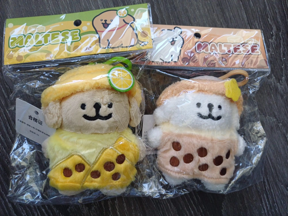 Maltese & Retriever Plush Keychain 线条小狗 (Lemon & Bobba Tea)