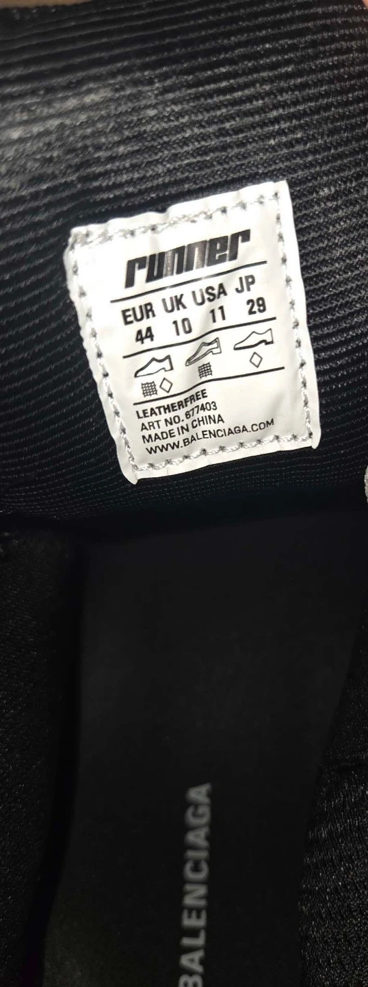 Balenciaga Runner sneakers in grey and black. European size 44 (UK 10, US 11, JP 29). Leather-free construction.