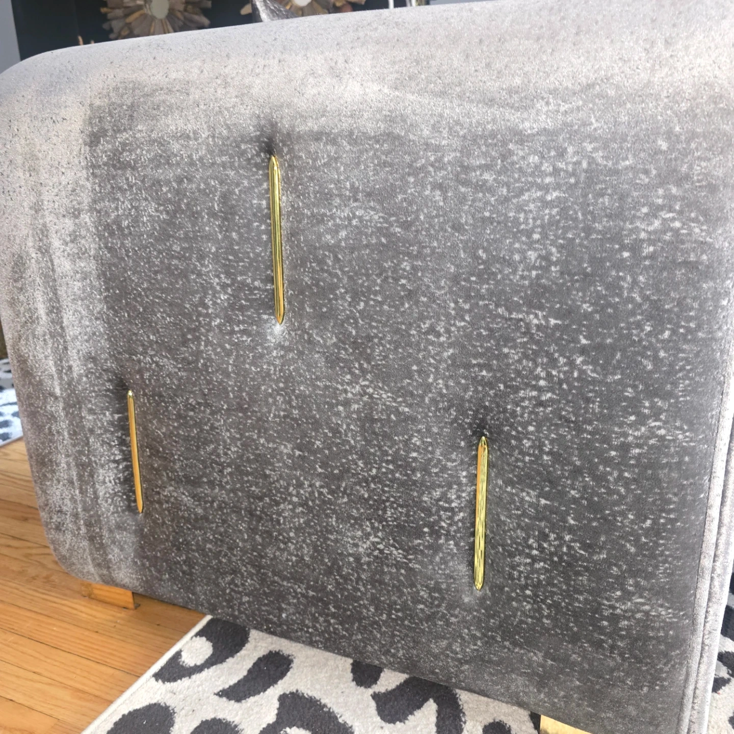 Grey Velvet Armchair with Gold Accents