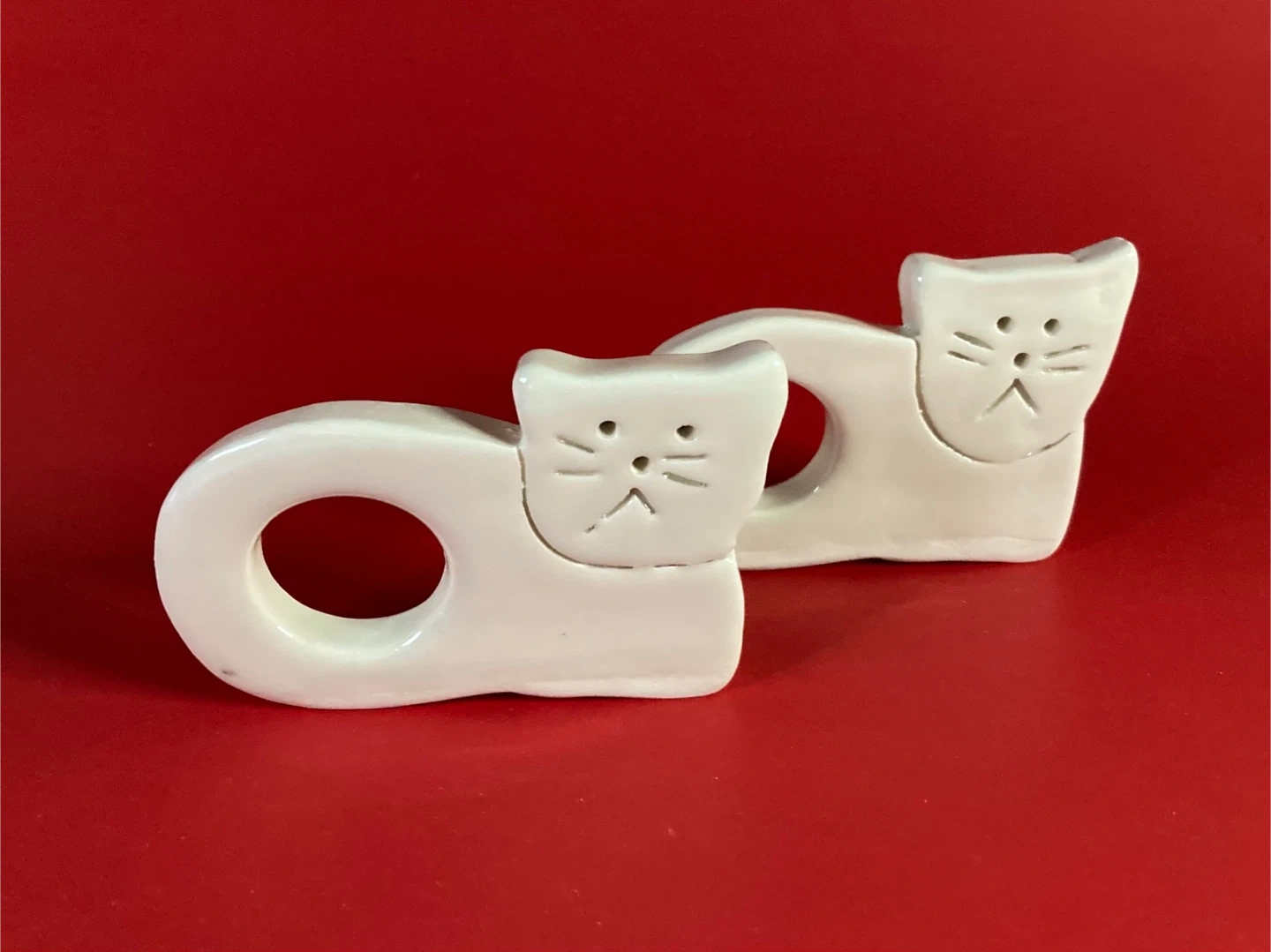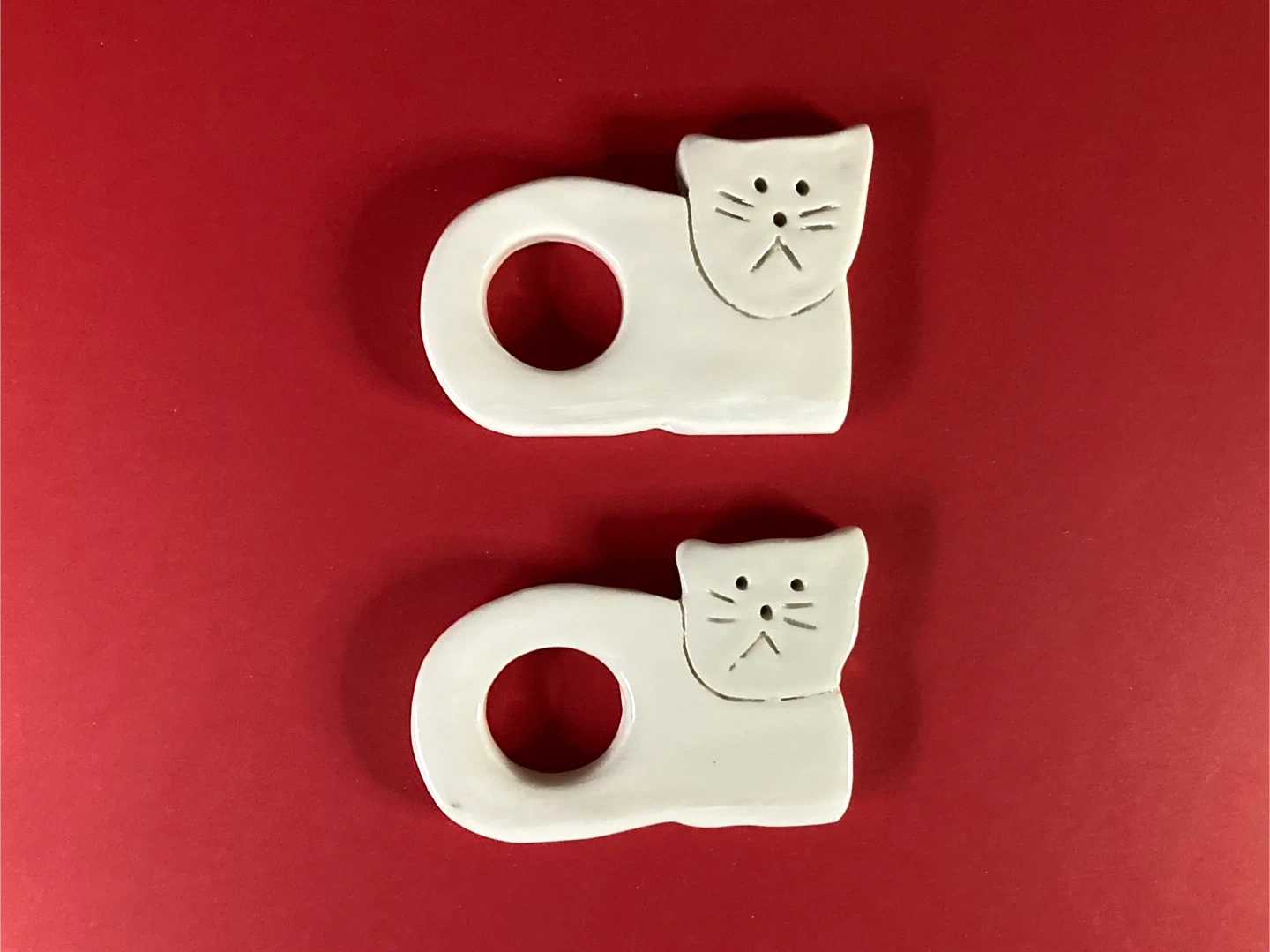 Set of 2 Cream Handmade Ceramic Cat Napkin Rings