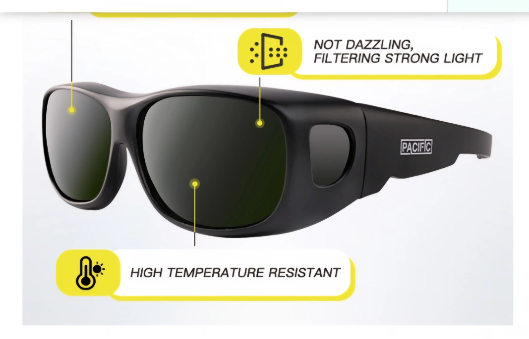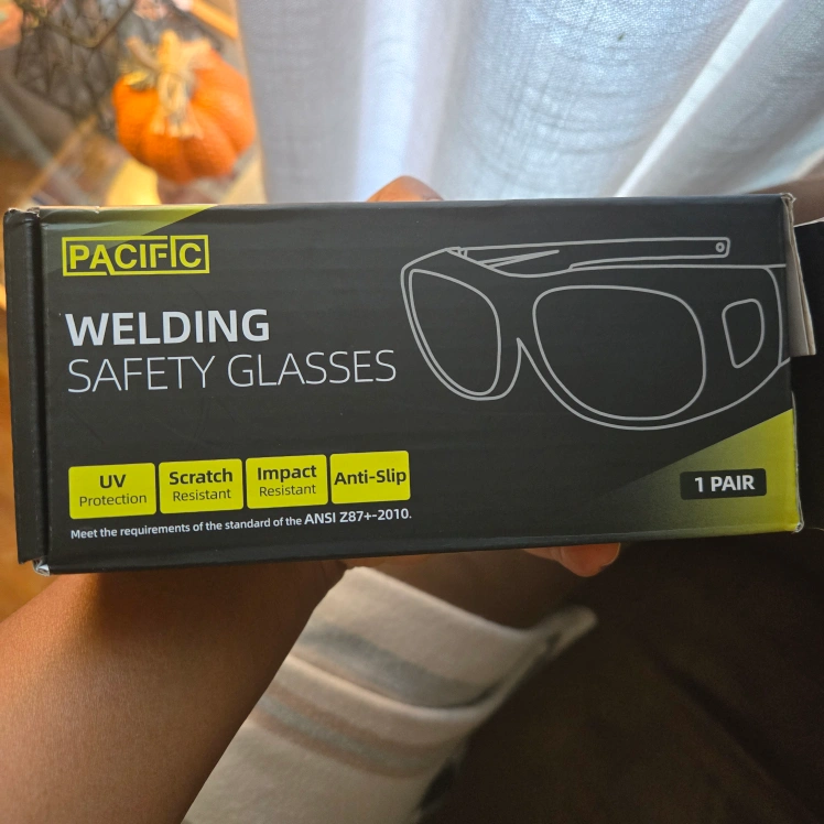 Selling a pair of Pacific welding safety glasses. They're brand new and still in the box! These glasses offer UV protection, are scratch and impact resistant, and feature an anti-slip design. They're also high temperature resistant and filter strong light, so they won't dazzle you. Perfect for any welding job!