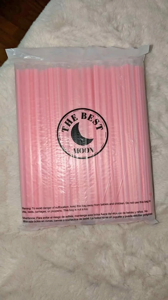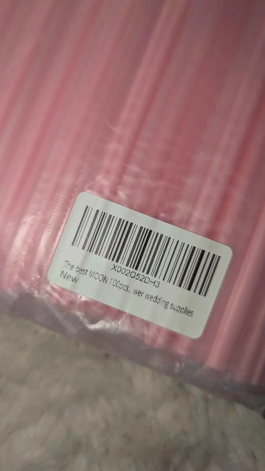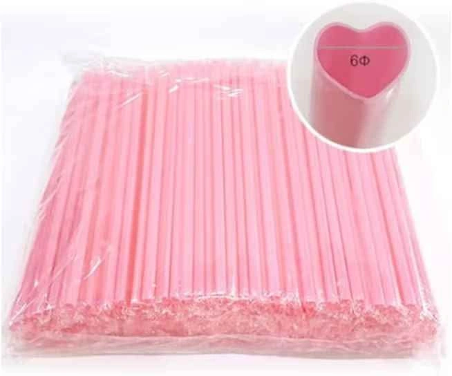 Pack of 100 individually wrapped plastic straws by 'THE BEST MOON' that are light pink and heart shaped. Great for weddings and events