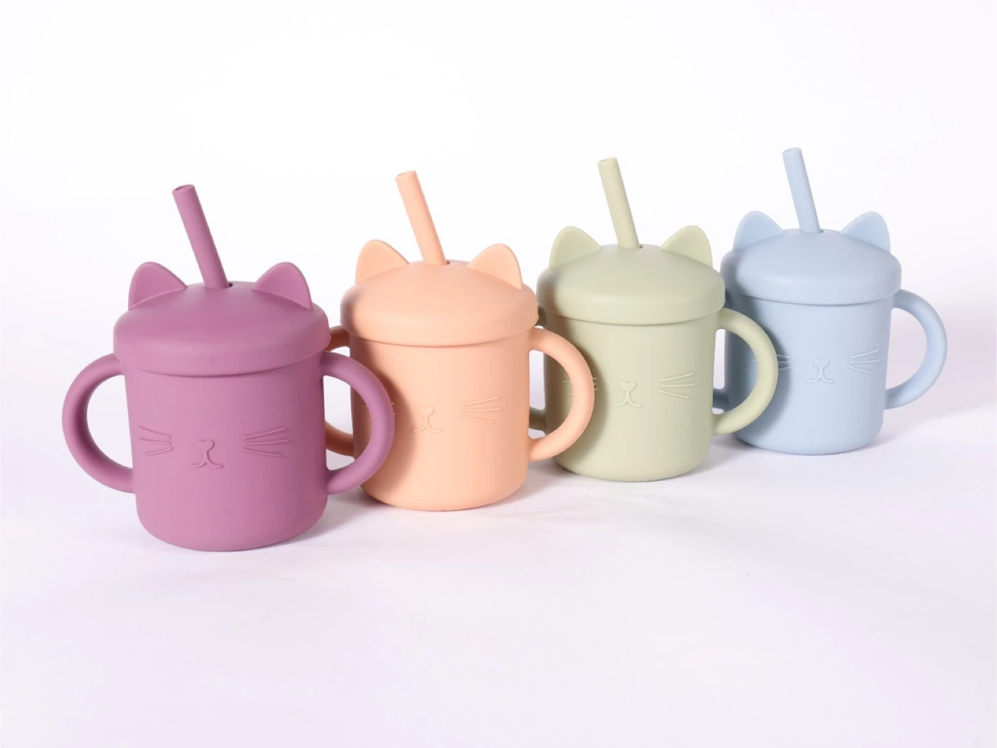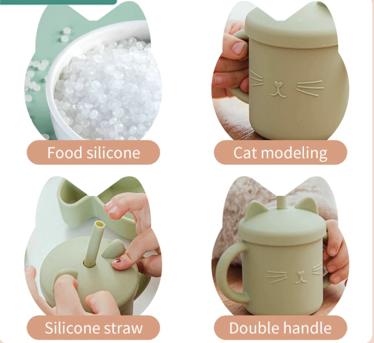 10PACK OF 2 Brand New in Package. Made from food-grade silicone and features a fun cat design. The cup is dishwasher and microwave safe, making it easy to clean and use. It also has a straw and double handles for easy gripping. Pick up & cash only.