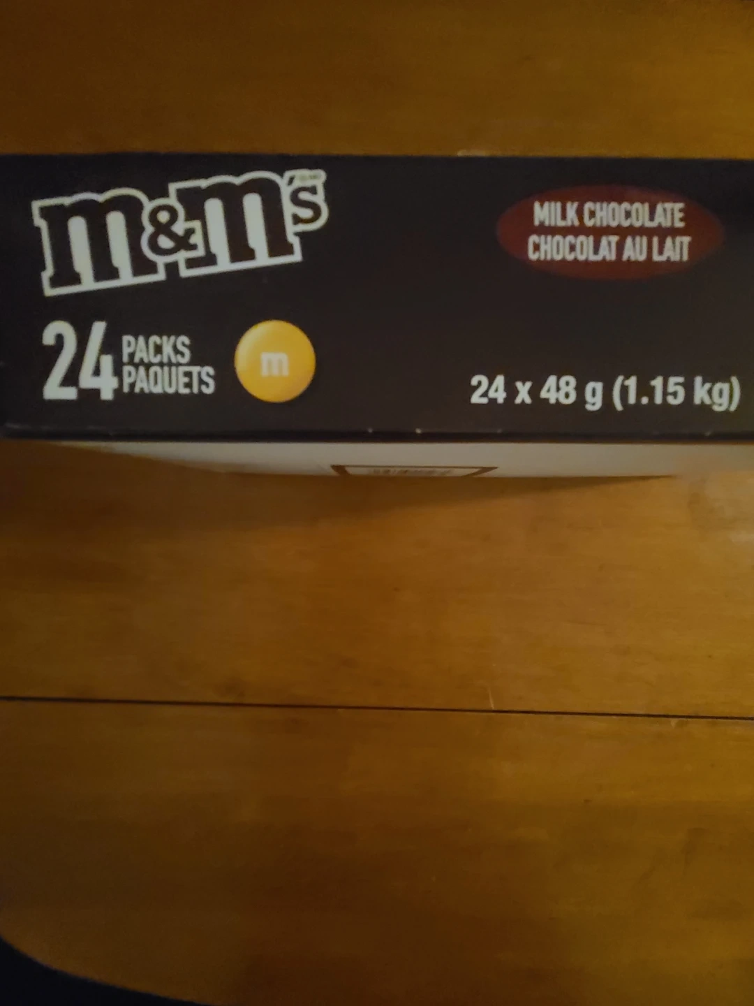 This is a box of M&M's milk chocolate candies. It contains 24 individual packs, with each pack weighing 48g for a total of 1.15 kg. The best before date is April 2026. These are great for parties or sharing!