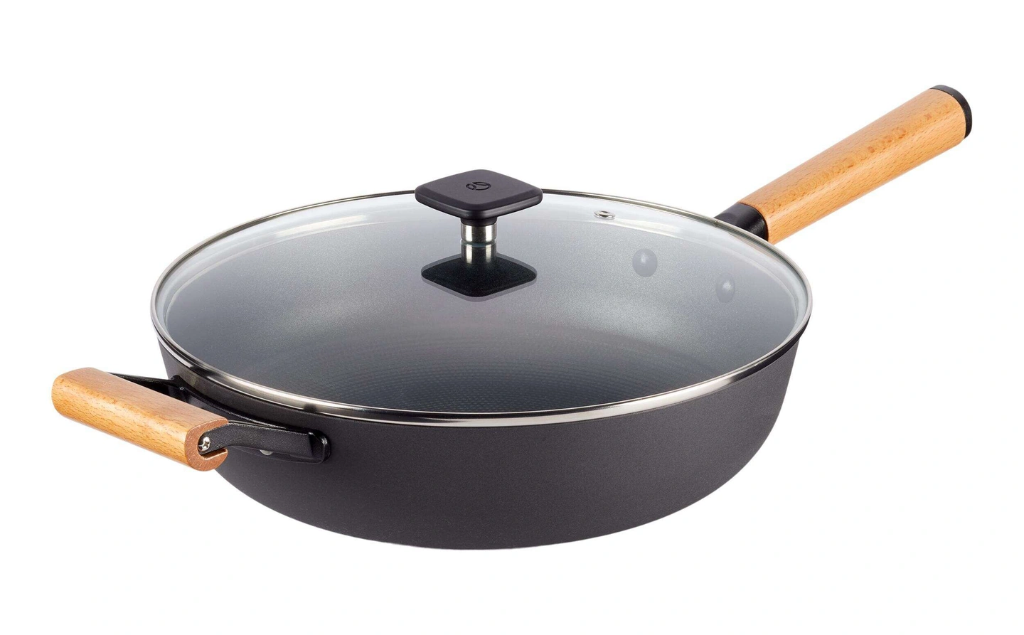 The PADERNO Classic Cast Iron Jumbo Cooker is perfect for stovetop searing, browning, sautéing, frying, or steaming a delicious meal. This wok pan has many features to make your time in the kitchen easier and even more enjoyable. The Dimpled honeycomb surface traps oils to improve cooking performance and thanks to the Premium PFOA-free non-stick surface, makes food release effortless. Featuring Ultra-durable seamless cast iron construction with quantanium coating, this PADERNO wok is built to last for years to come. - PADERNO Classic Cast Iron Jumbo Cooker is perfect for stovetop searing, browning, sautéing, frying, and steaming - Premium PFOA-free non-stick surface for effortless food release - Ultra-durable seamless cast iron construction with quantanium coating - Tempered glass tight-seal lid retains heat and moisture for better and quicker steaming - Elegantly designed, flat-top beechwood handles for added comfort when serving or pouring - Dimpled honeycomb surface traps oils for better cooking performance - Safe for all stovetops, including induction - Capacity: 4.8 qt. (4.5 L) - Diameter: 11.8" (30 cm)