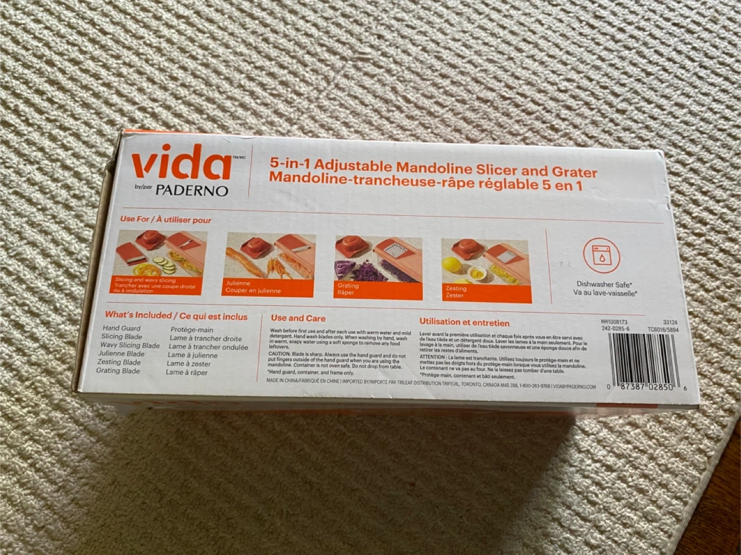 424This is a mandoline slicer and grater, featuring multiple blades for various slicing needs. The item is brand new. You can finely slice vegetables and fruits. This kitchen tool is an essential for any home cook