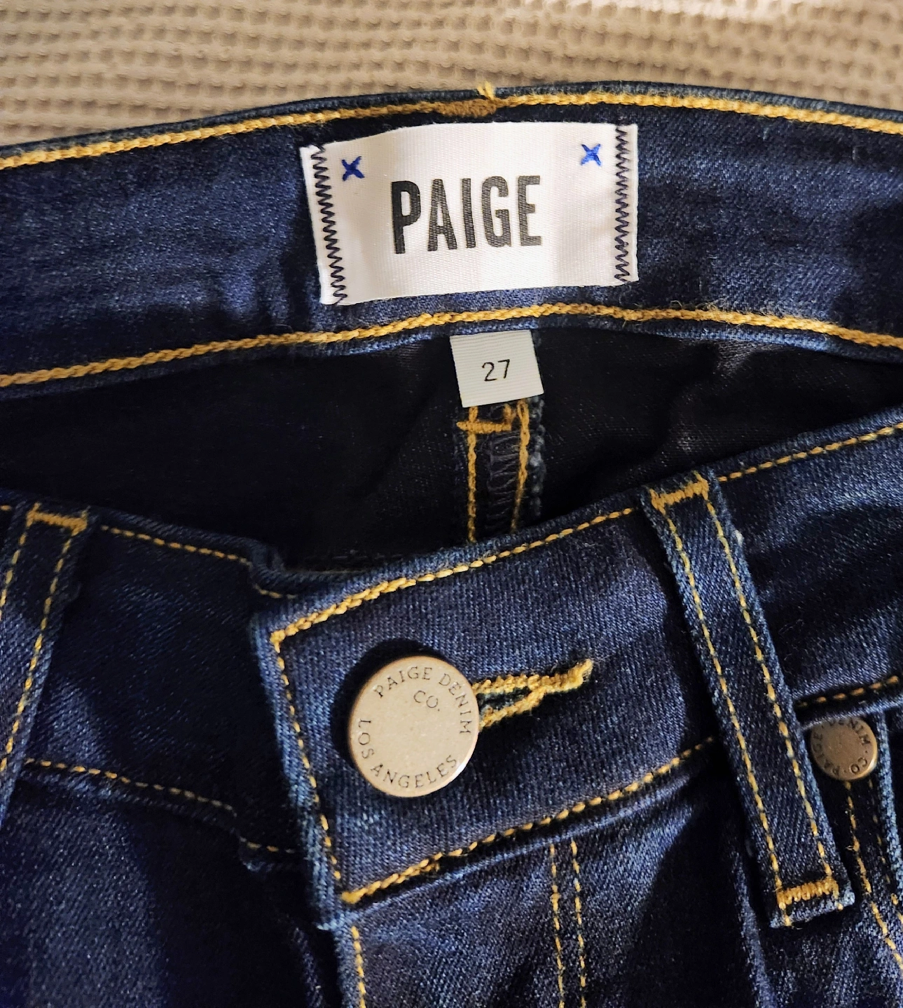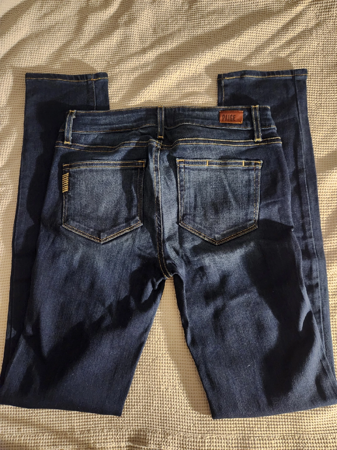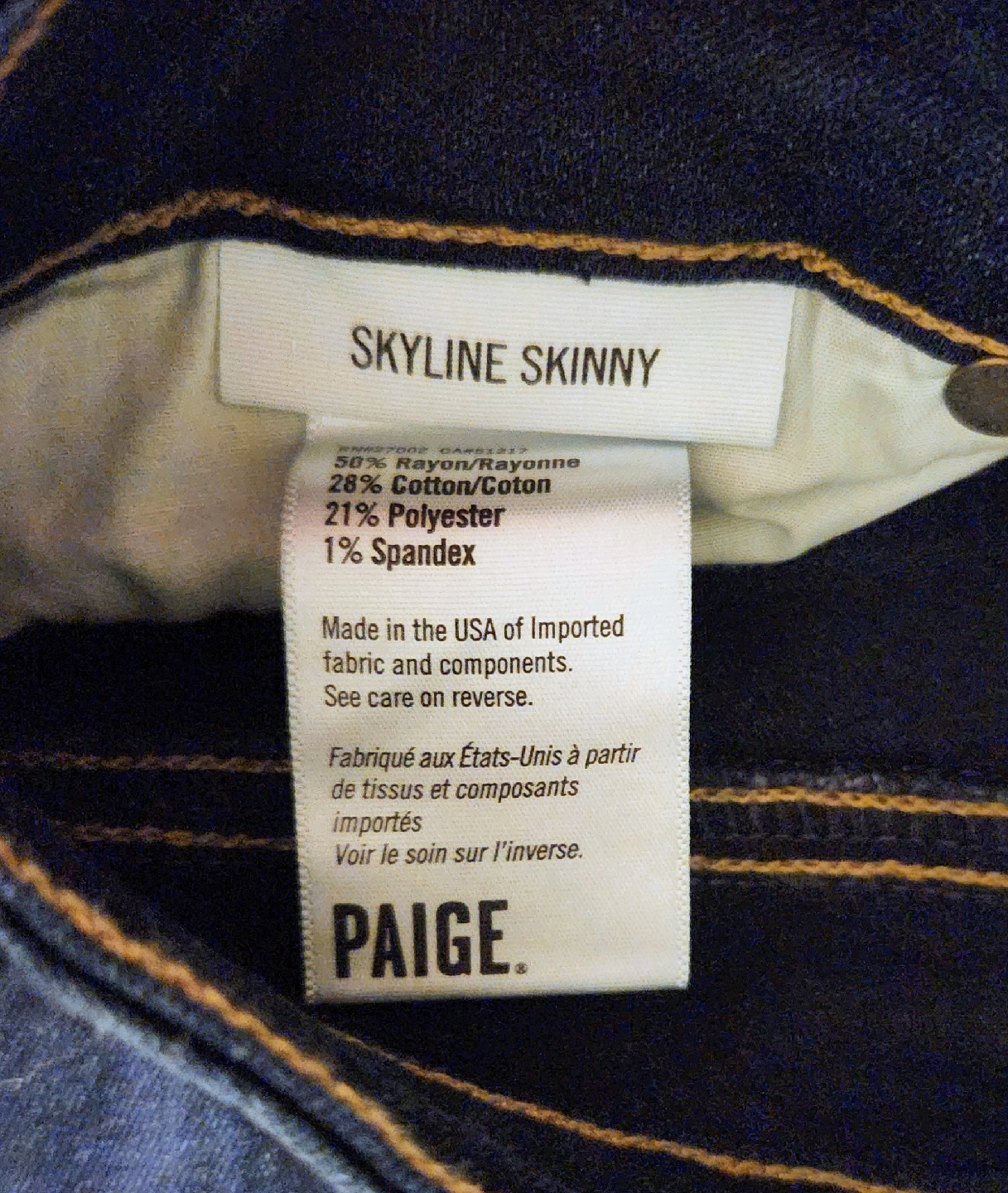 Selling a pair of Paige Skyline Skinny jeans in size 27. They're in great shape and ready for a new home! The material is a blend of 50% rayon, 28% cotton, 21% polyester, and 1% spandex, making them super comfy.Brand new never been worn or washed , no tags.