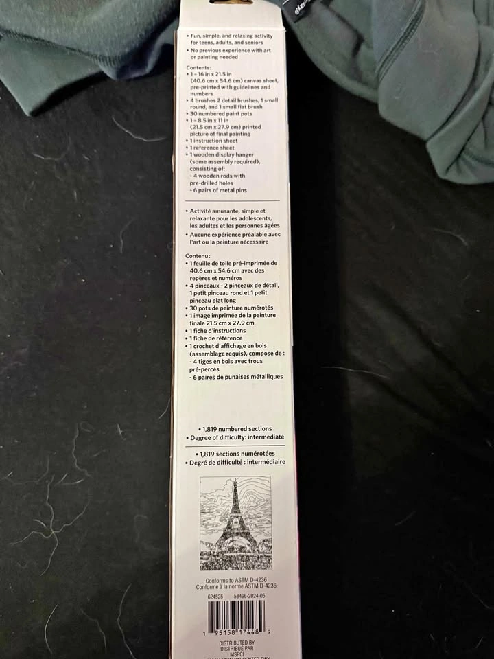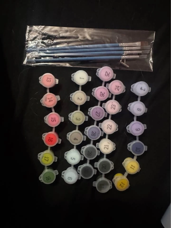 31Bought from Michael’s. Opened but not used. Paint by numbers kit - artist loft. Comes with paint, brushes, canvas, and image of canvas once painted. All packages are still sealed. 48 pc