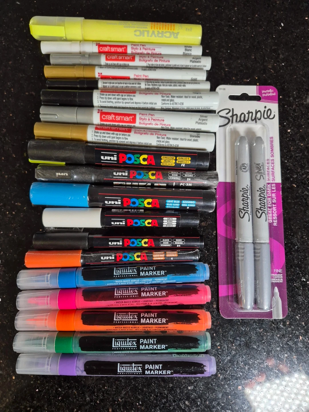 75Selling a collection of paint markers in various colours and brands! You'll find Craft Smart, Uni Posca, Liquitex, and Sharpie markers in this lot. Great for all sorts of art projects and crafts