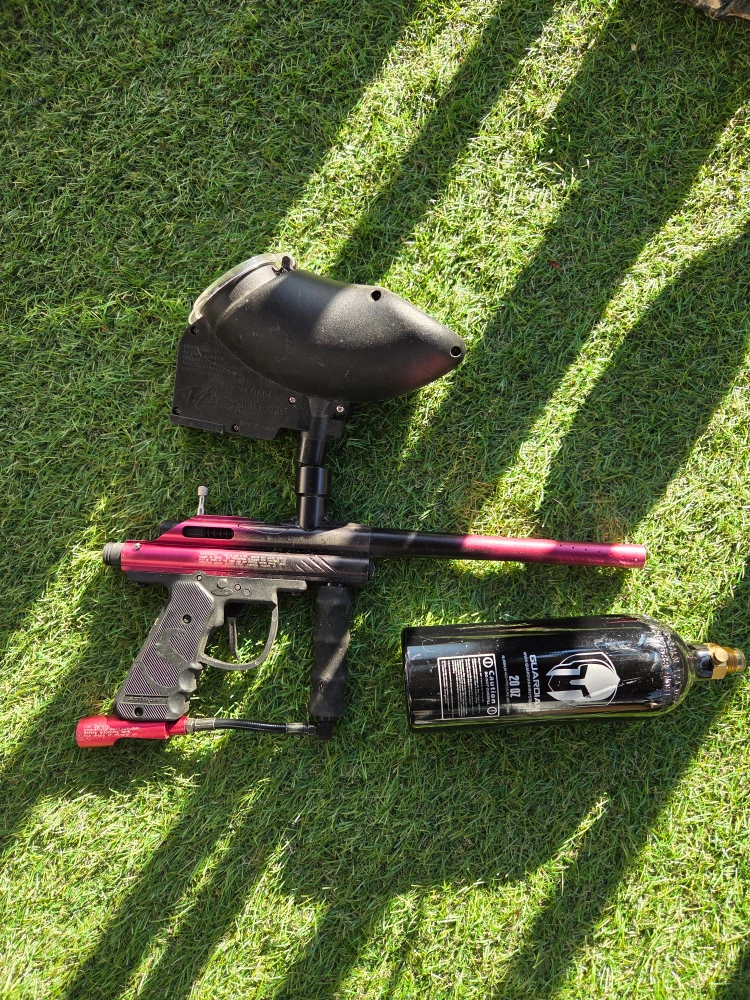Selling a paintball gun, leaks air, probably an easy fix but I don't paintball anymore, as is, was super cool, semi, full auto and 3 shot burst