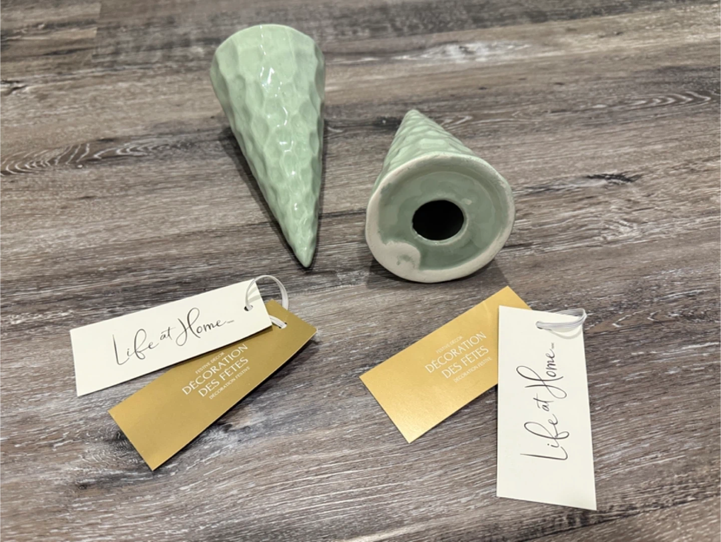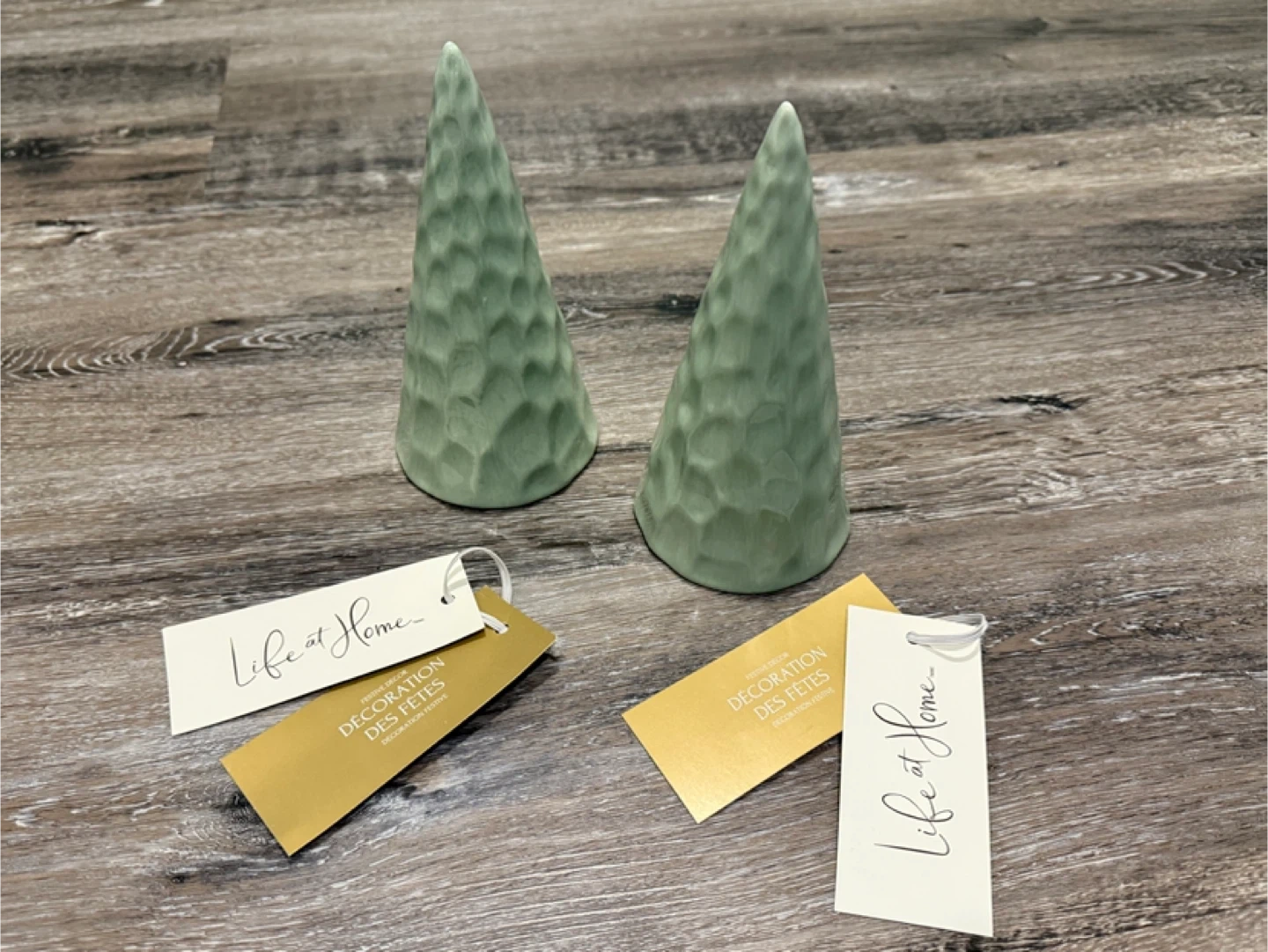 Selling these cute decorative festive trees from Life at Home! They're a nice light green colour and about 7 inches tall. Perfect for adding a touch of holiday cheer to any room Pick up Sage Hill NW Cash only Pet and smoke free home Please check out my other listings