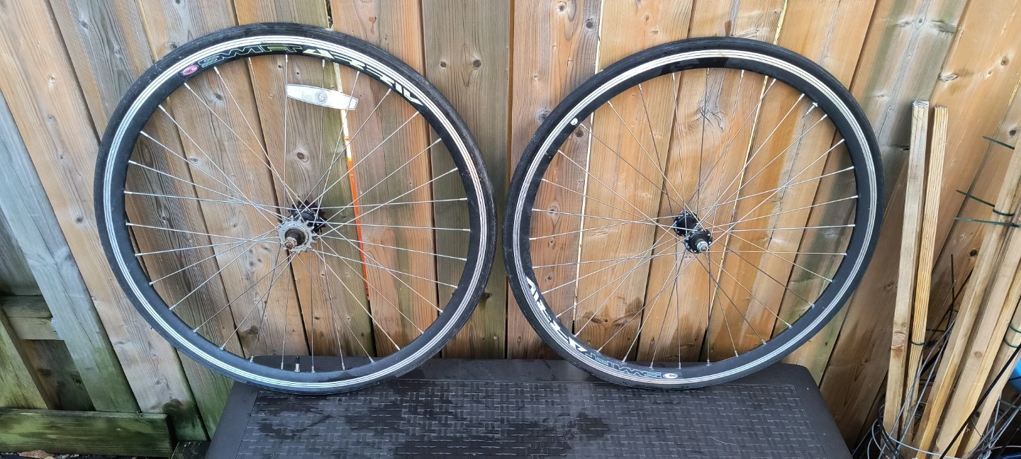 80A 700c fixed Gear wheels. They are technically a flop flop hub but the freewheel side is siezed. Could be rescued with some elbow grease.