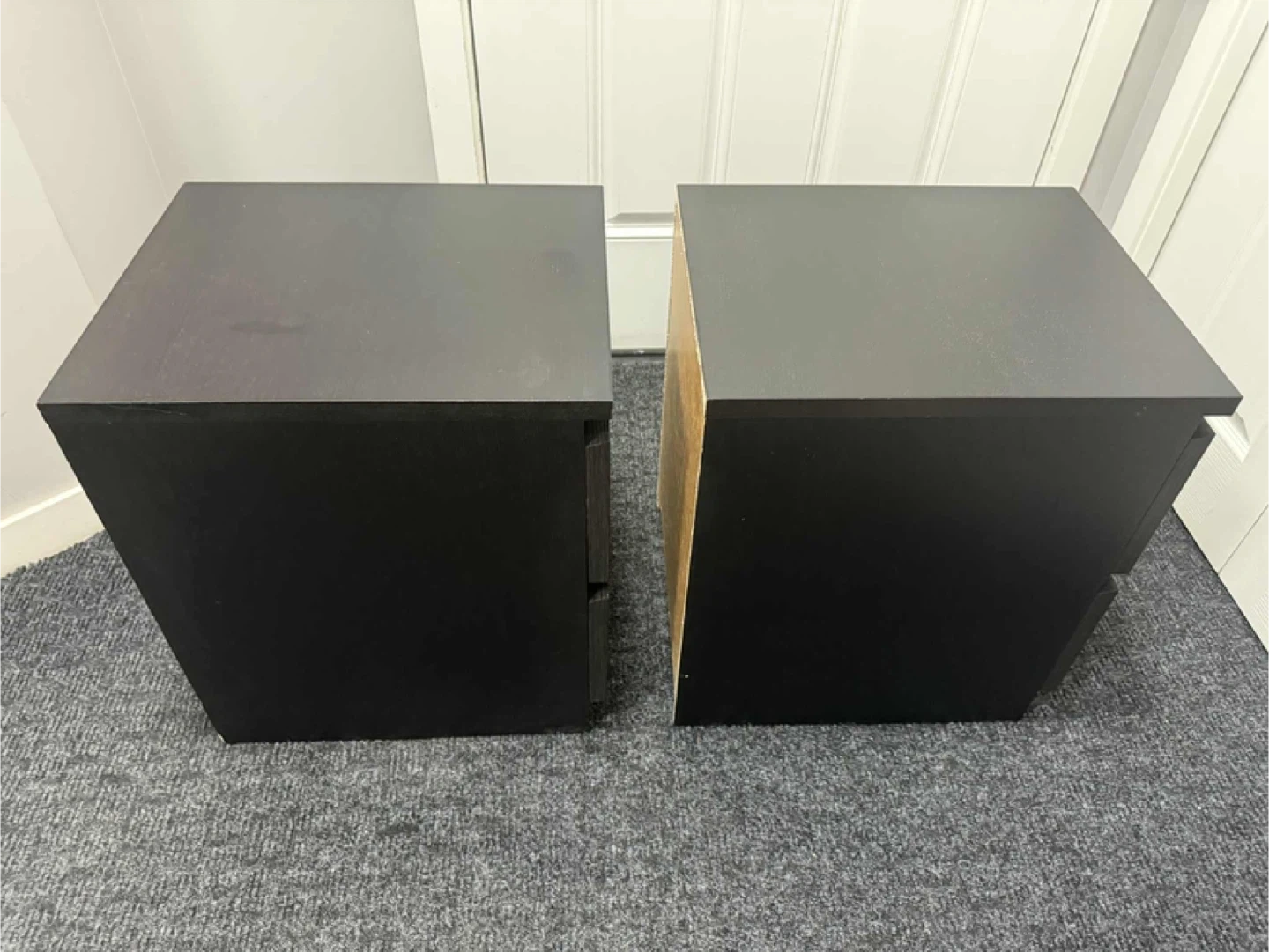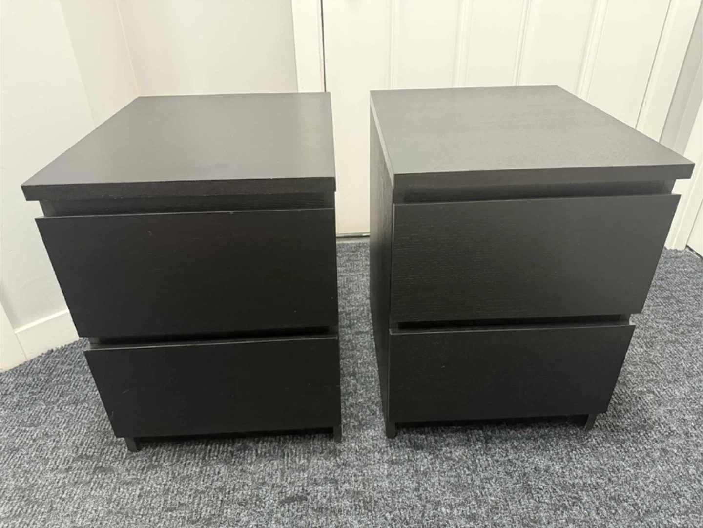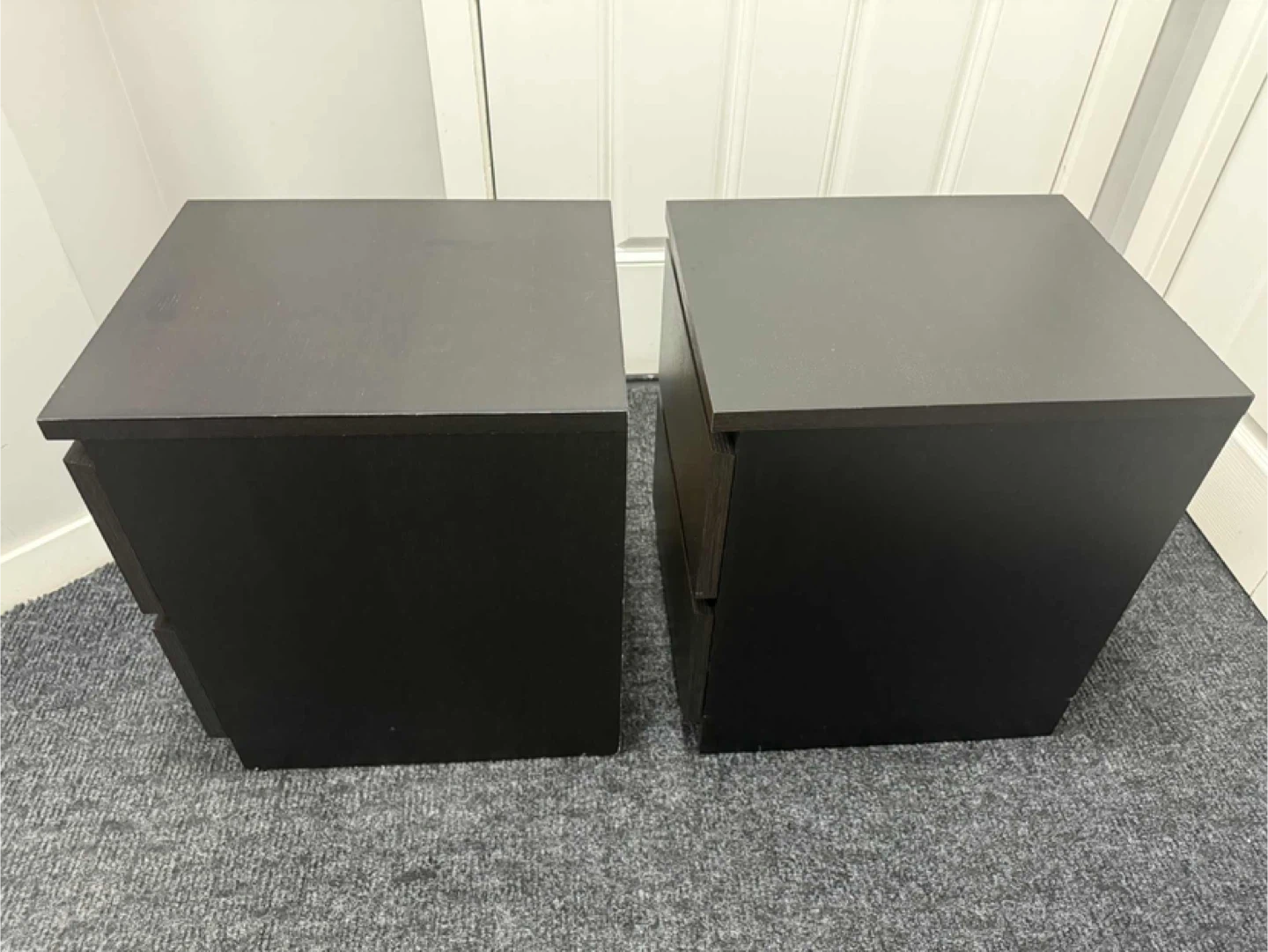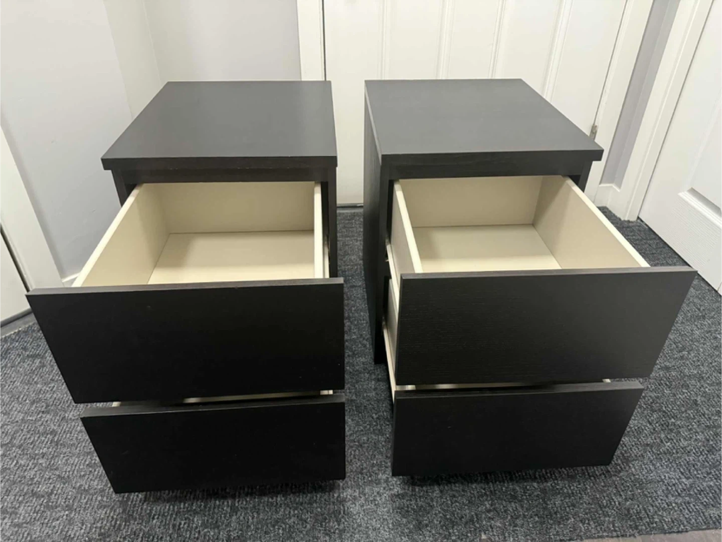 Selling a pair of bedside tables. They are black and each have two drawers. They are in good condition and would look great in any bedroom! Height 21.5 inches Width 15.75 inches Depth 18.75 inches Pick up Sage Hill NW Cash only Pet and smoke free home Check out my other listings