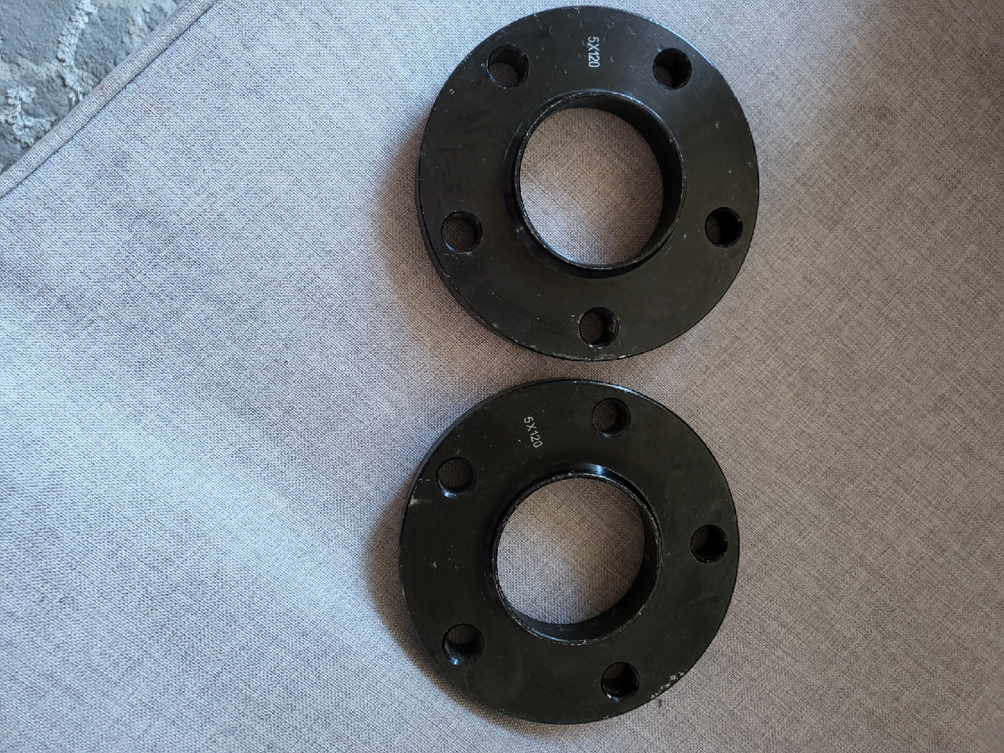20Selling a pair of black wheel spacers. They appear to be in good condition and are marked with '5x120'. Perfect for adjusting your wheel offset!...