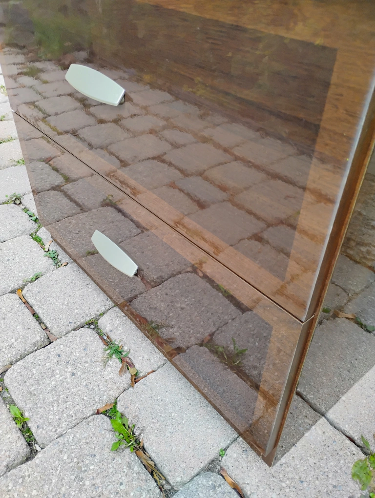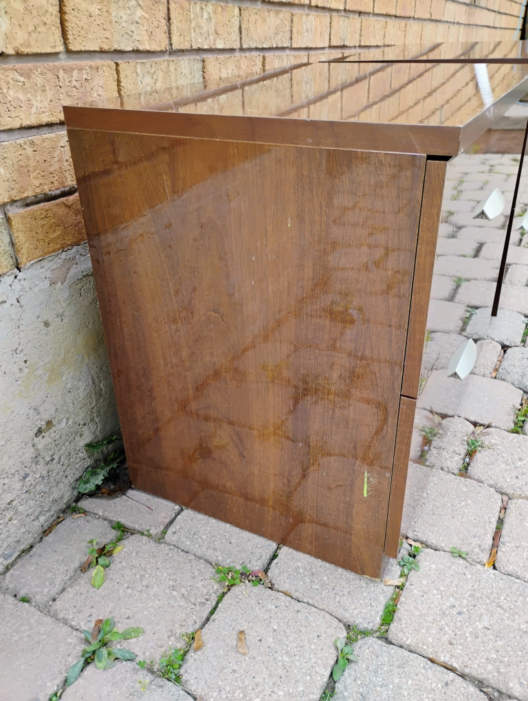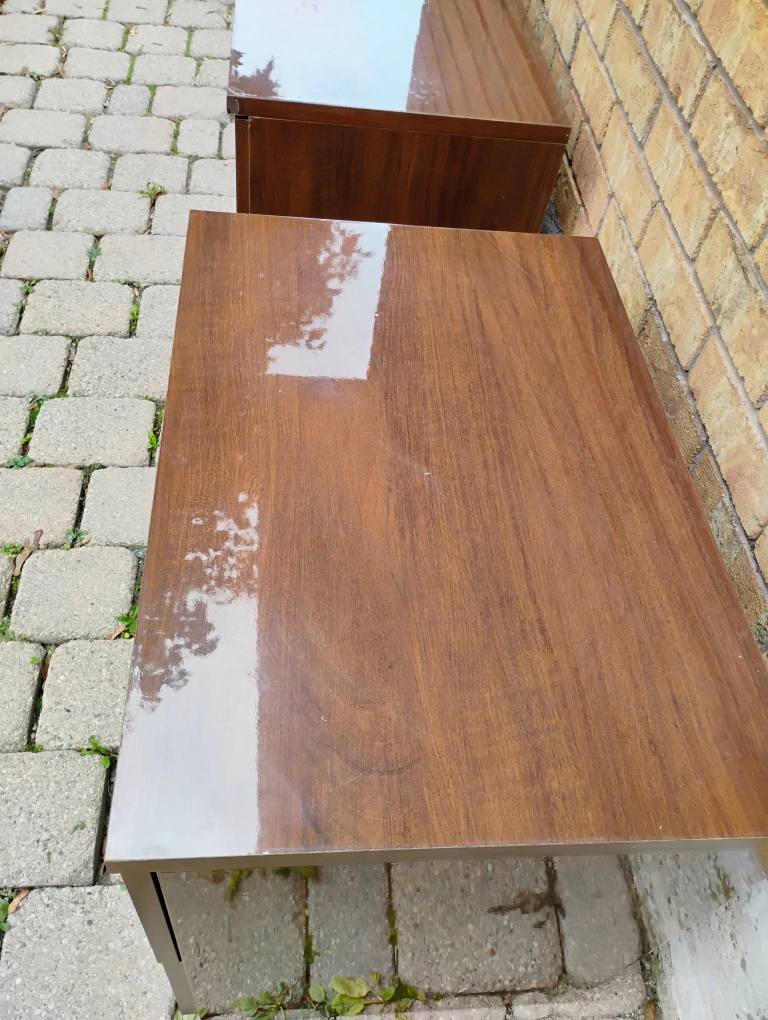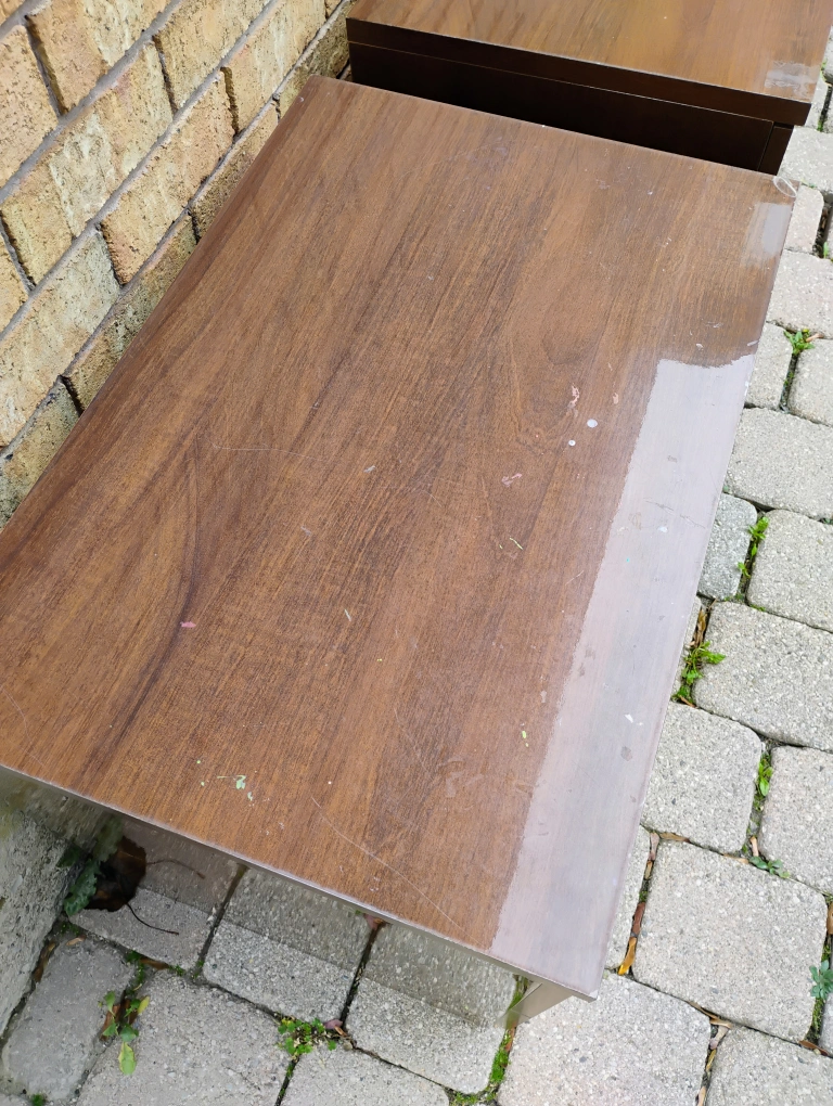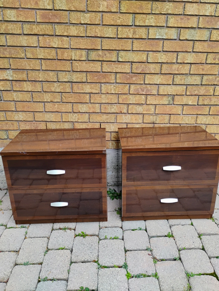Selling a pair of brown wood nightstands. They each have two drawers and silver handles. Used in good condition some minor dents and scratches. Approximate measurements 61H x 69W x 47D centimeters. Asking $30 each or best offer.