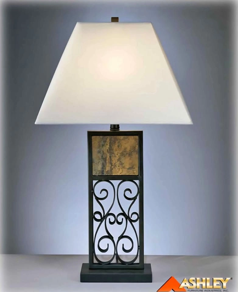 Pair of Elta Ashley Furniture Table Lamps Brown Metal/Slate