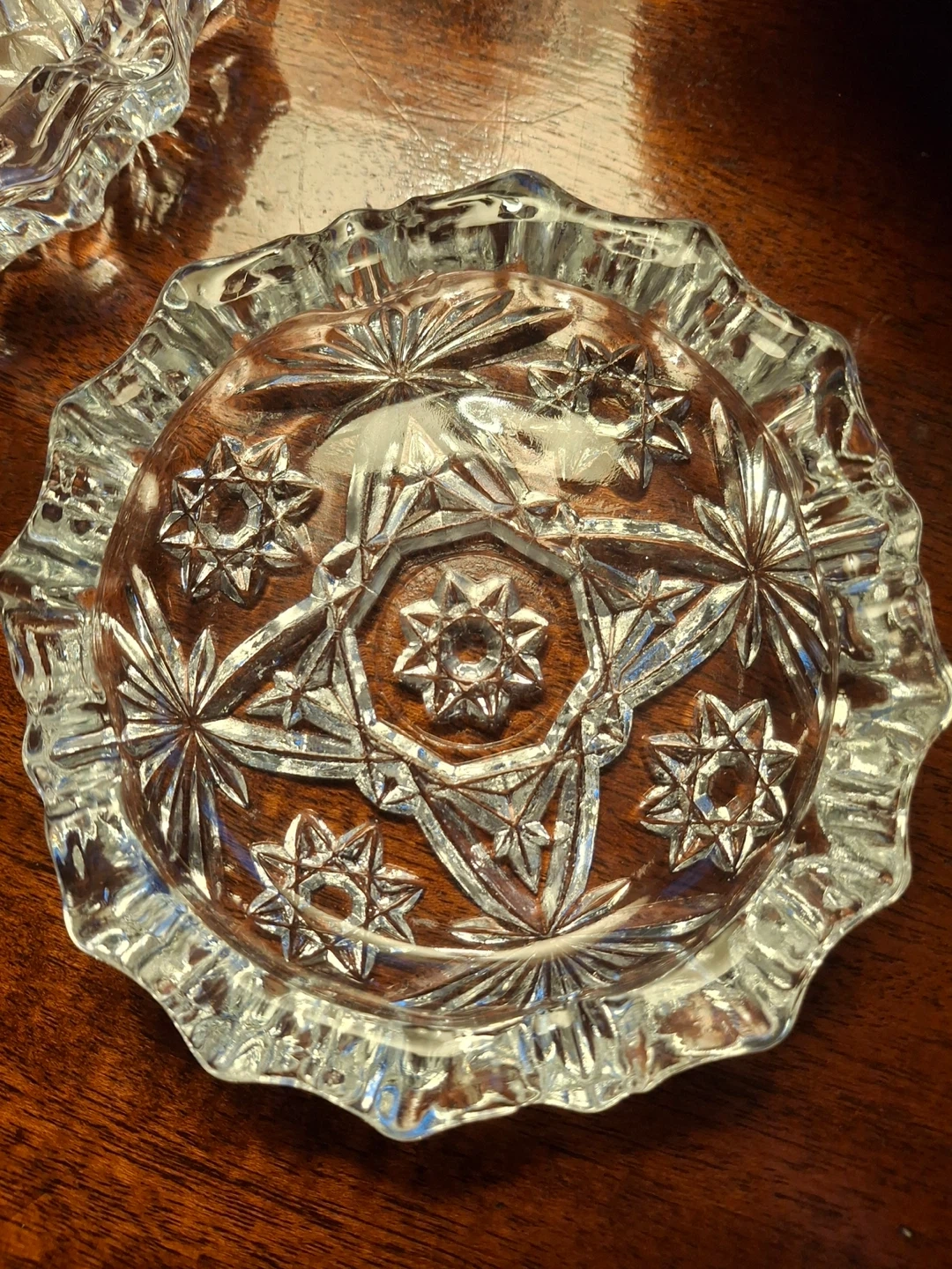 1000+Pair of vintage ash trays with intricate design. 4” across. Perfect condition. Price is for both together. Available for pickup in Markland Wood.