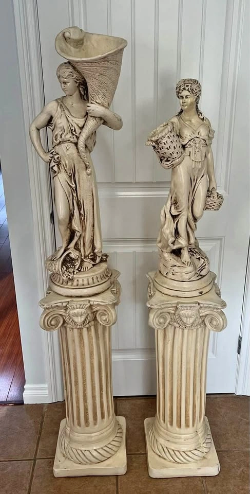 10Pair of Goddess Statues with pedestals. Bought them 25 years ago and are still in great condition.