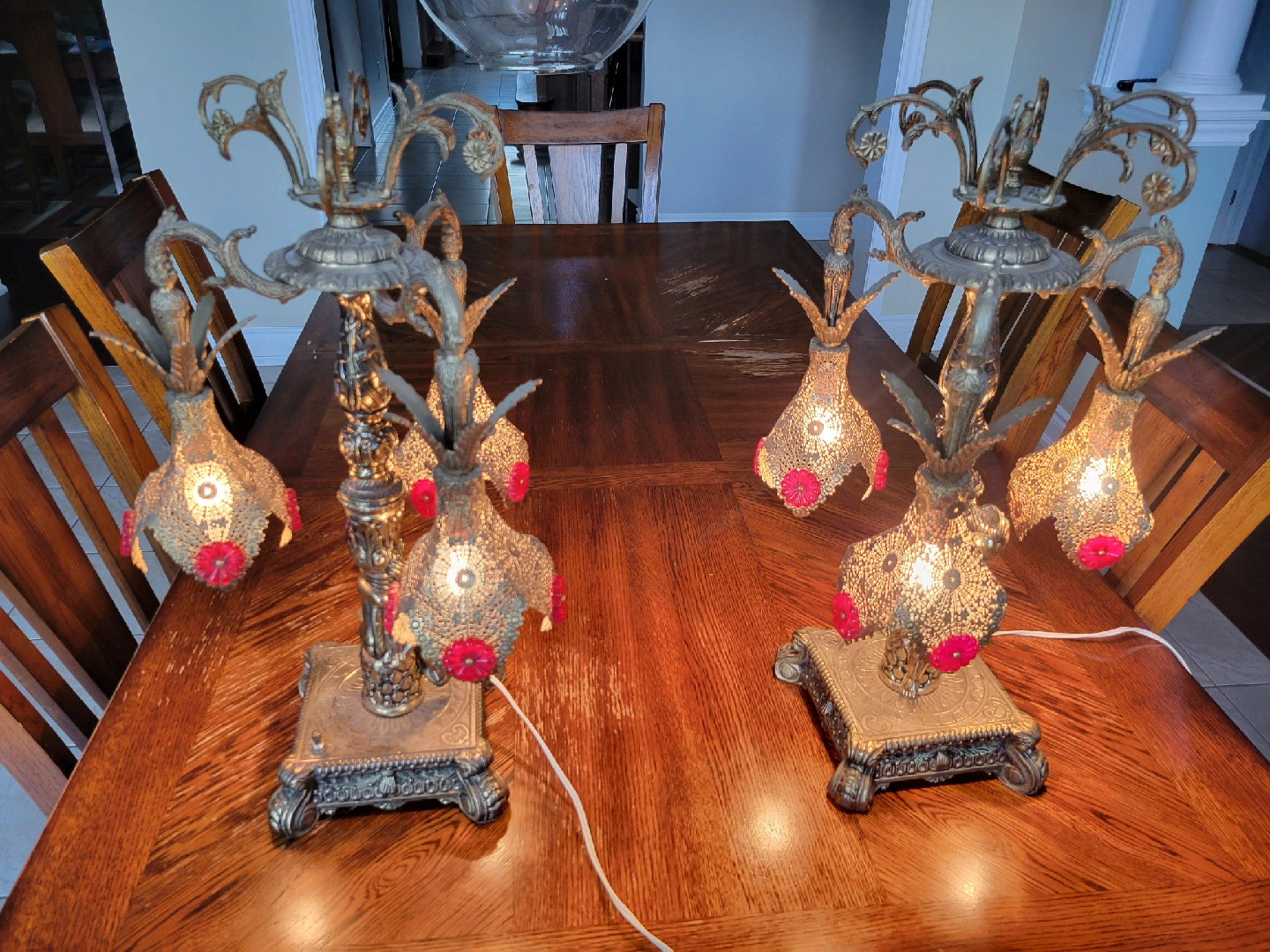 Pair of Hollywood Regency Style Brass Antique Table Lamps