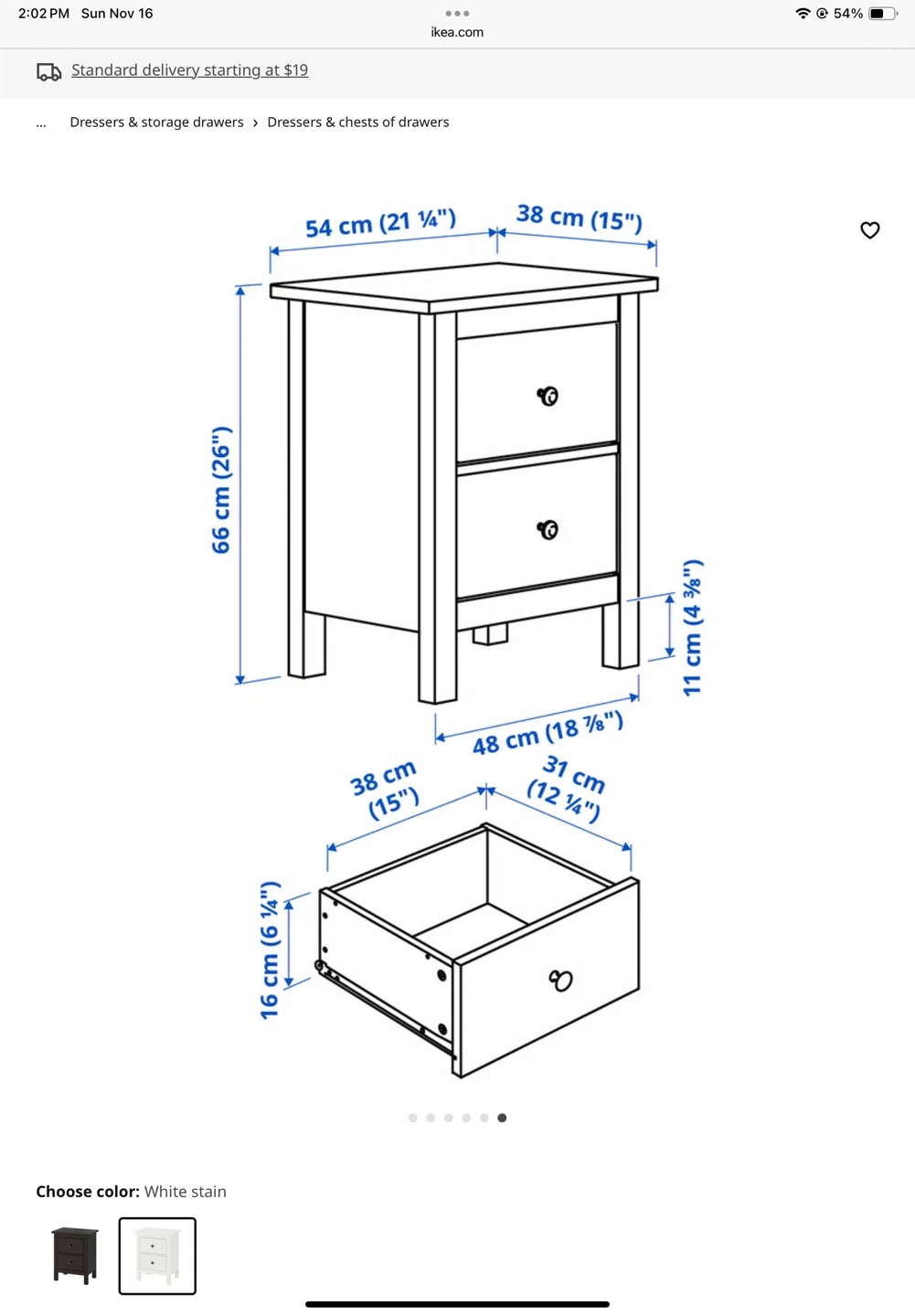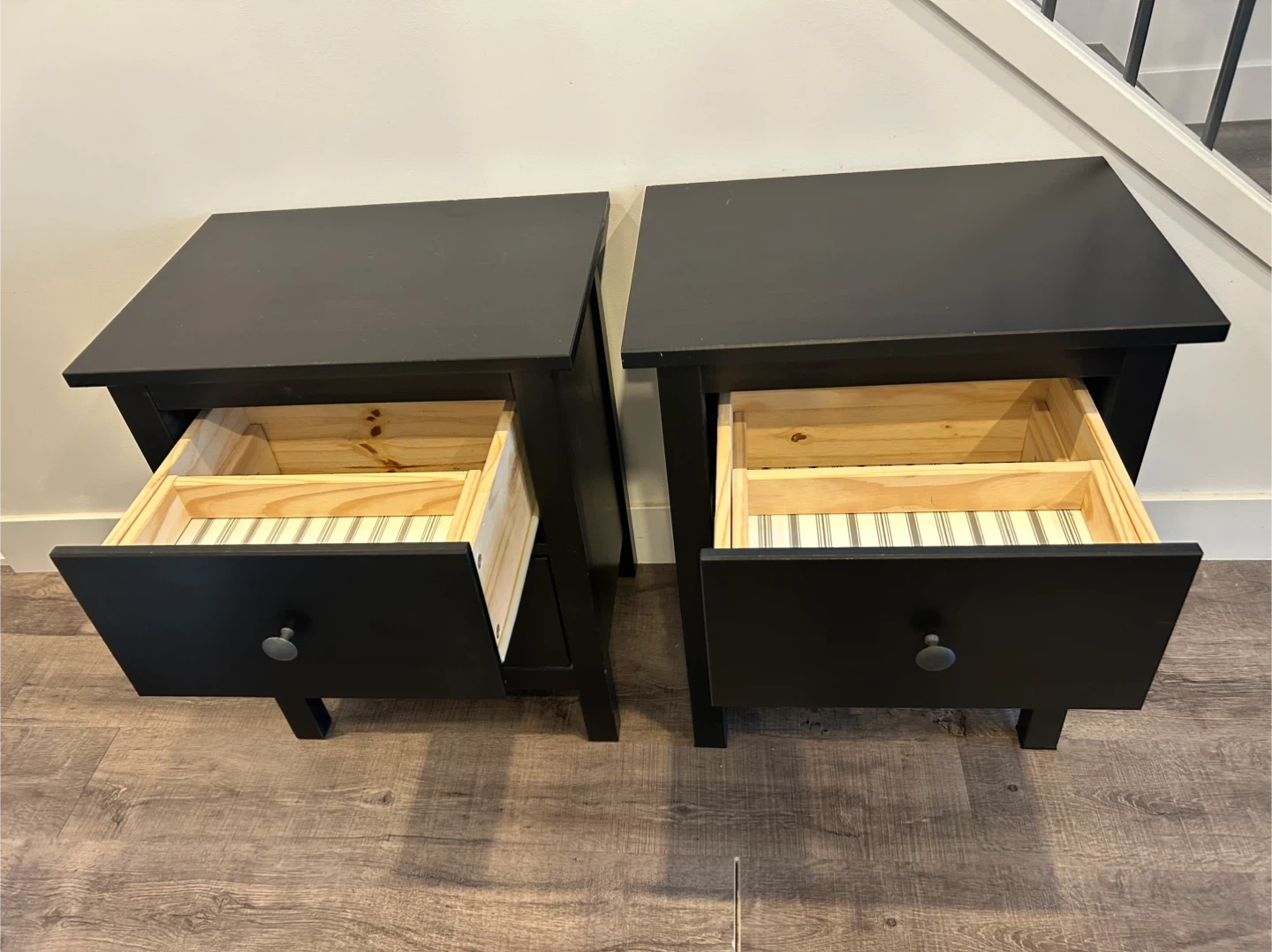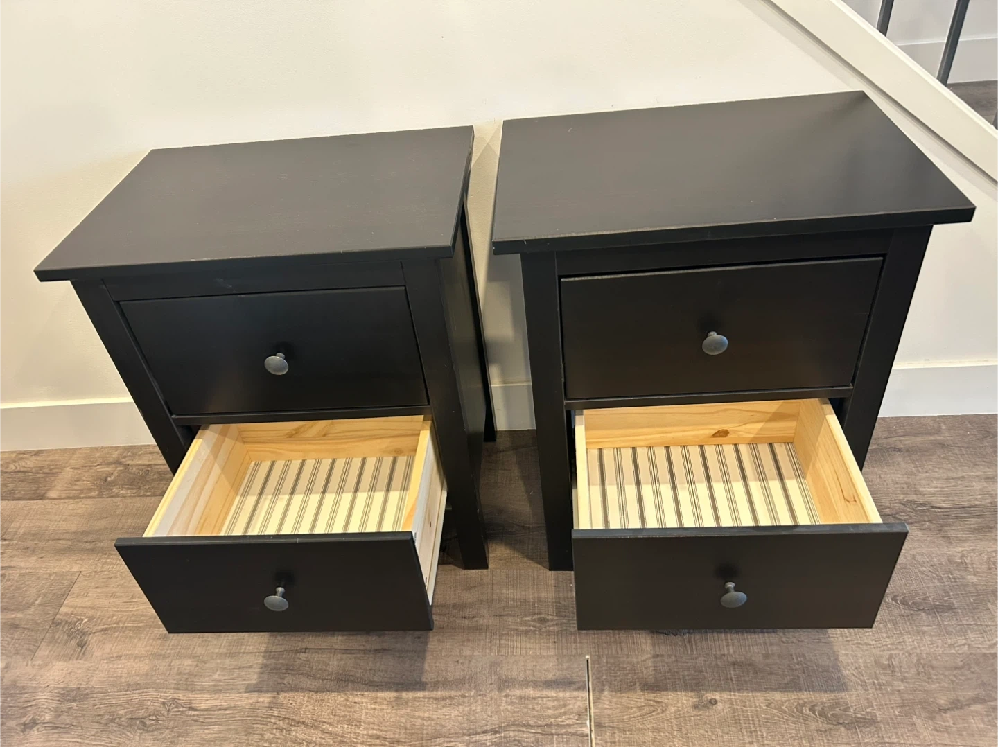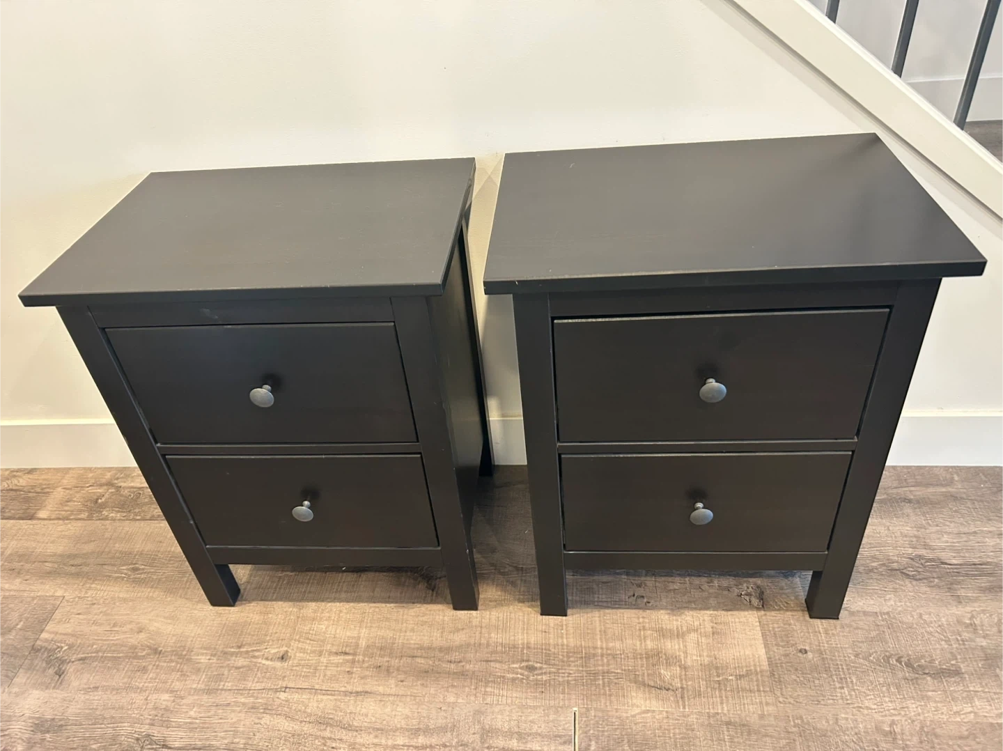 pair of IKEA HEMNES nightstands black brown, solid wood