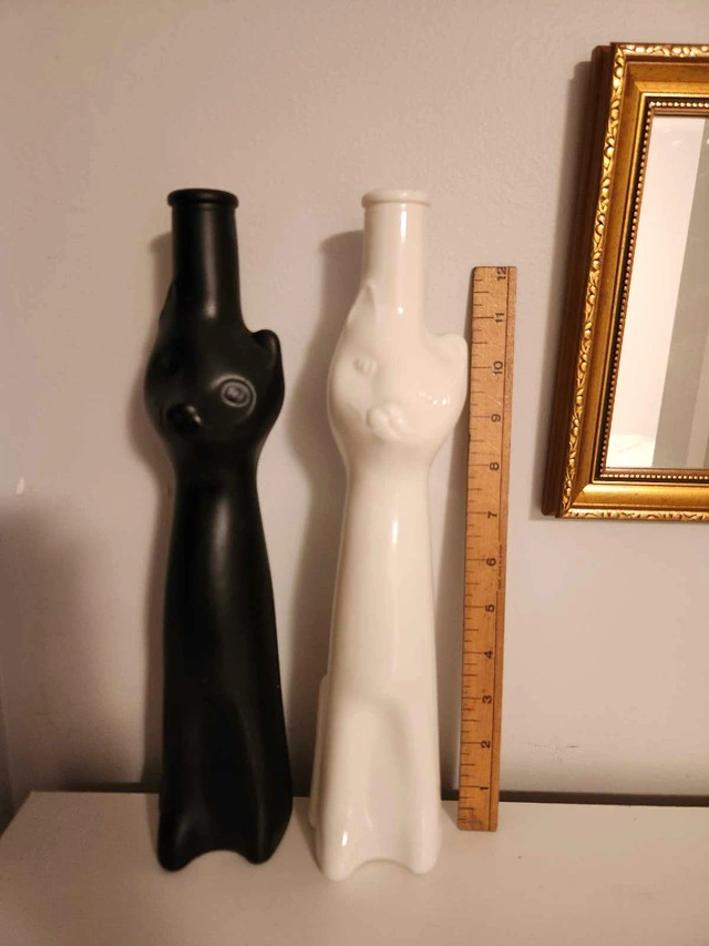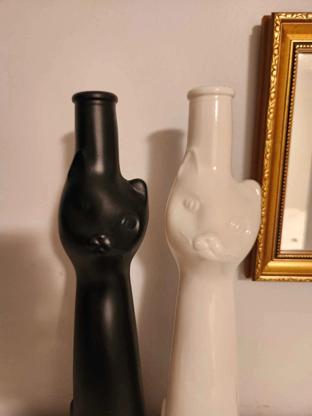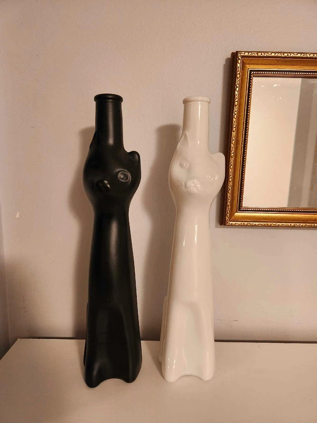152 Moselland Riesling Cat Bottles - one white and one black. Pickup only. For Sale By: Owner